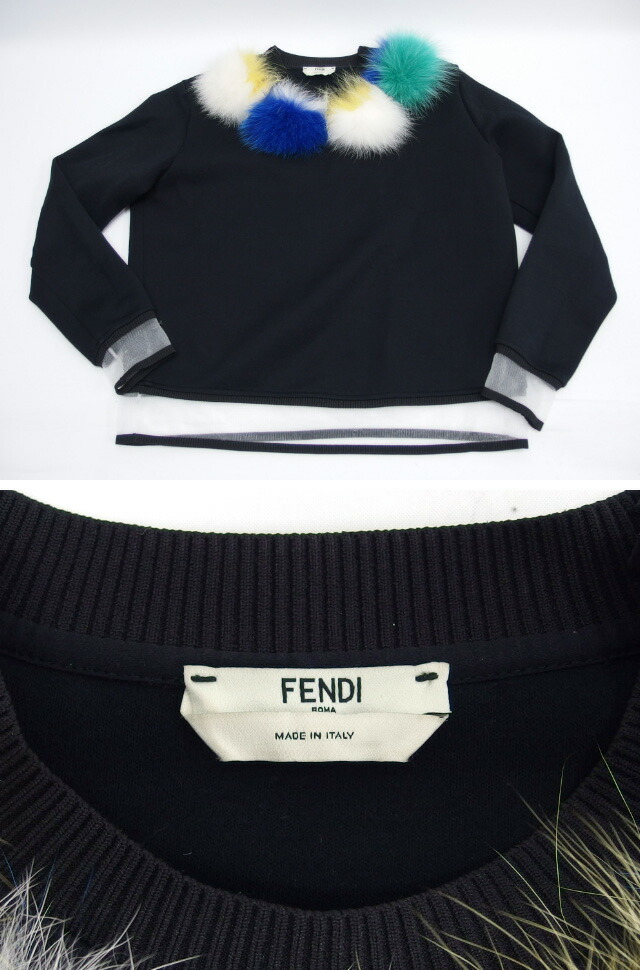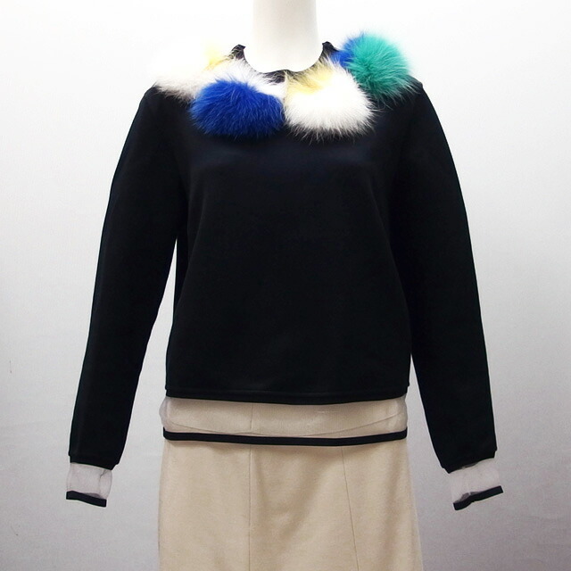 | 商品名 | ミンクファー付き スウェット トレーナー カットソー トップス ブラック(黒) クルーネック 長袖 襟ファスナー マルチカラー オーガンジー サイズ36 S~Mサイズ レディース FS6641 |