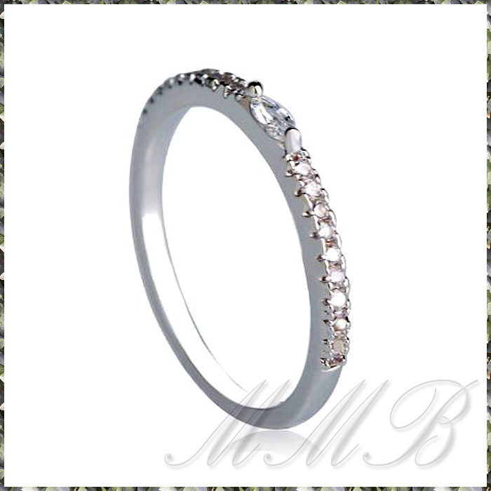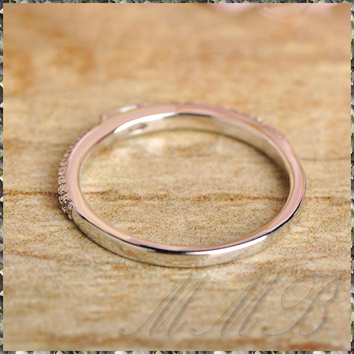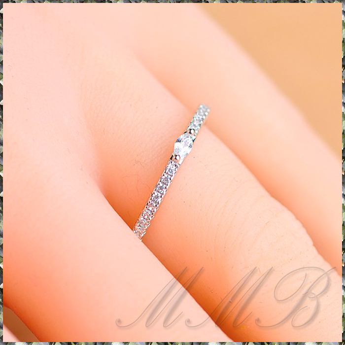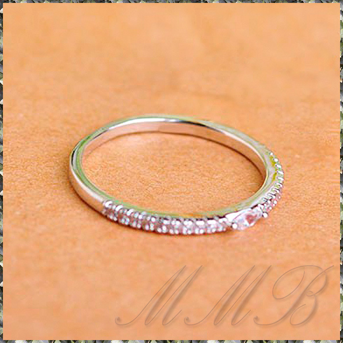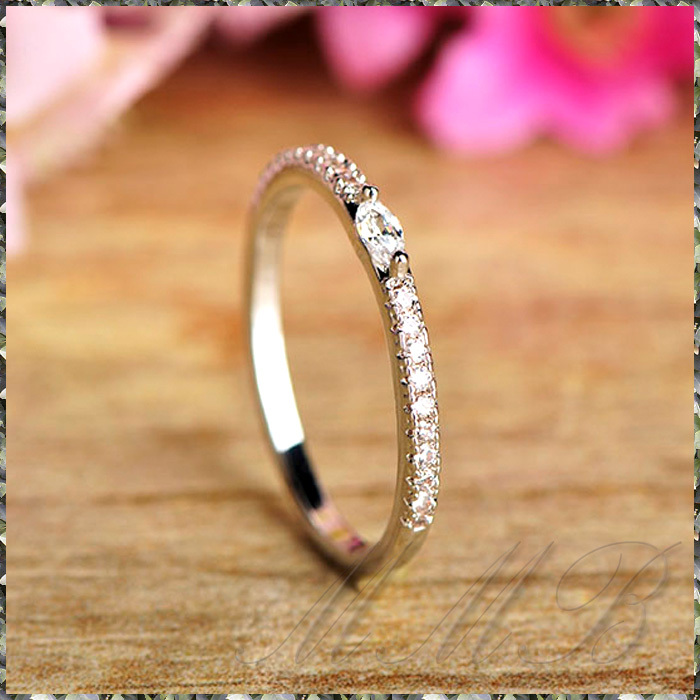 [RING] Rhodium Plated Micro Oval マイクロ オーバル クリスタルCZ ハーフエタニティー プラチナ カラー 1.5mm スリム リング 14号