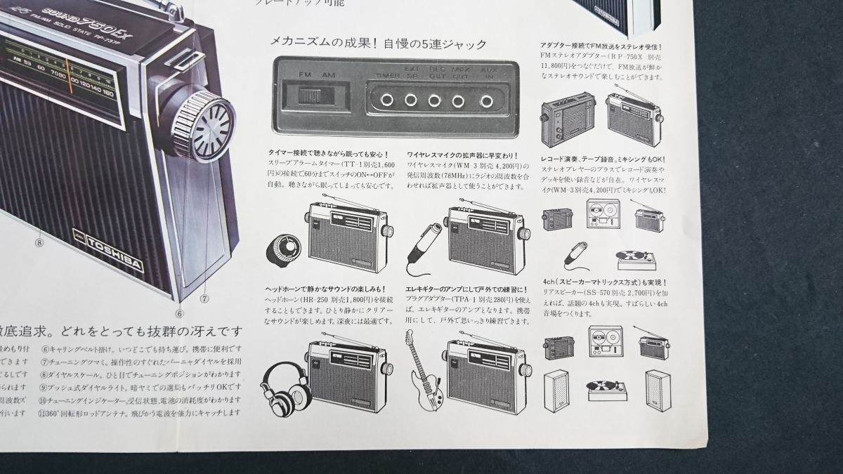 【昭和レトロ】『TOSHIBA(東芝 トウシバ)IC RADIO(ラジオ) SOUND 750(ナナハン)EX RP-737F カタログ』1970年頃/SOUND 750 FT(RF-750FT)/SOUND 750 ST(RP-74F) | ||