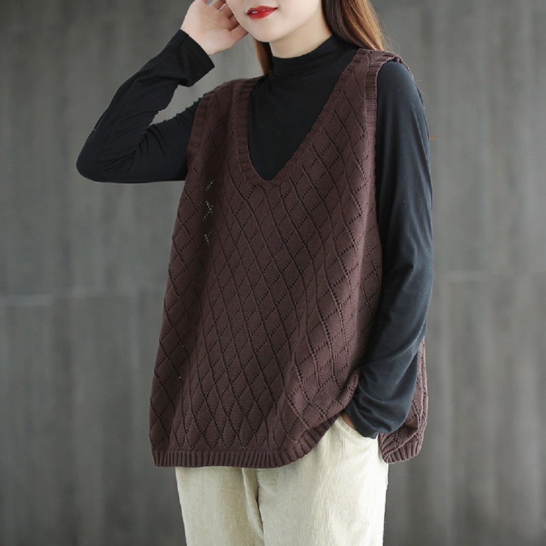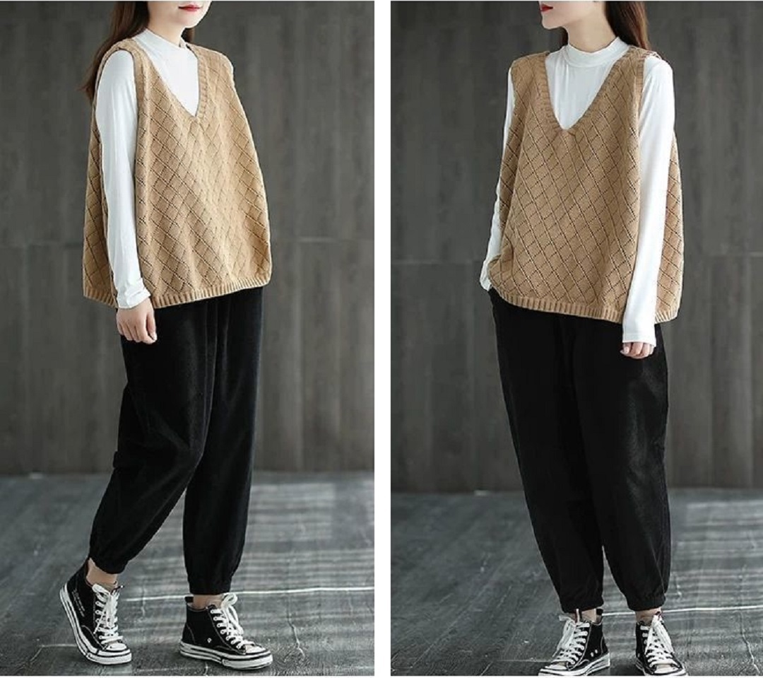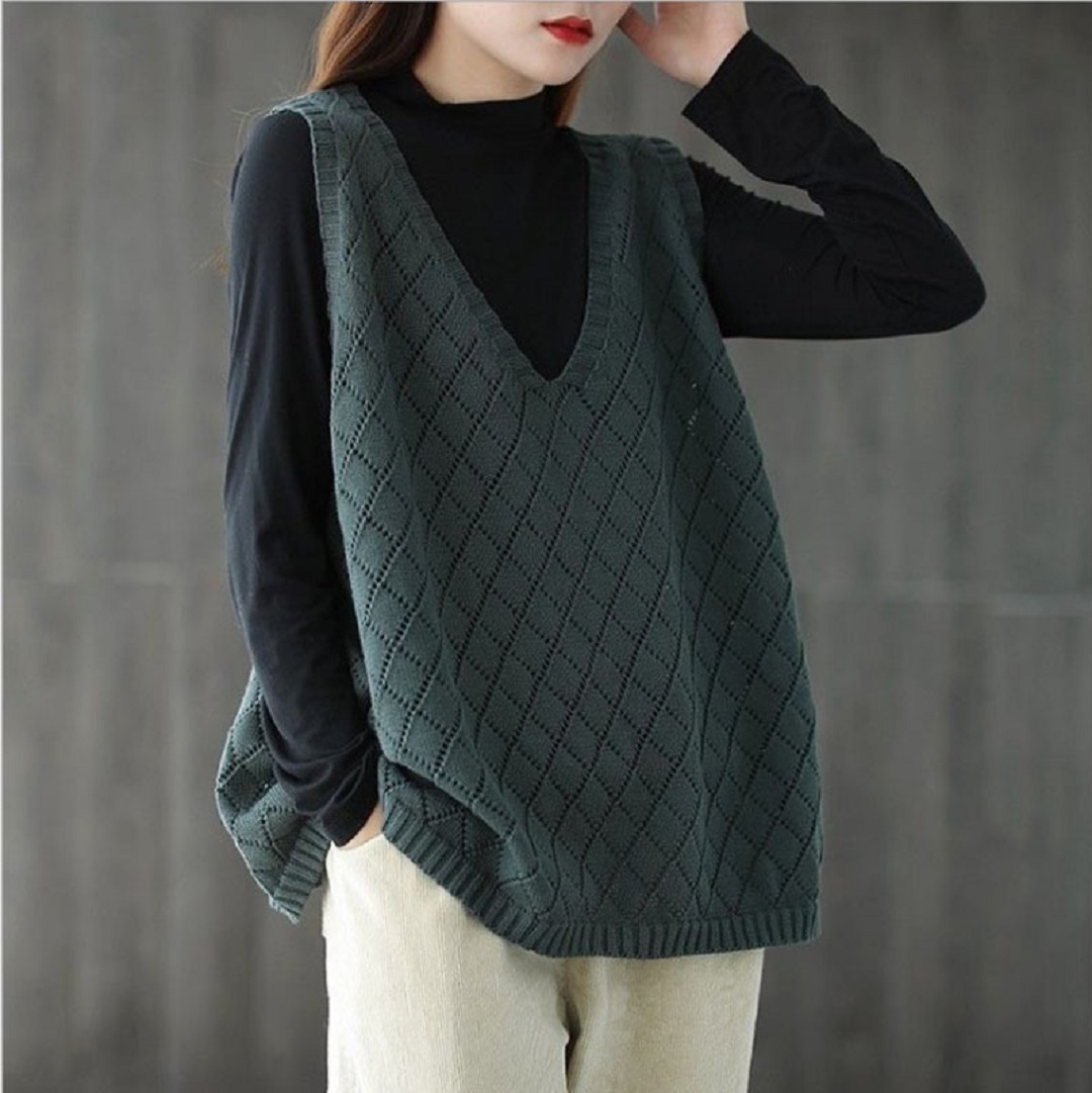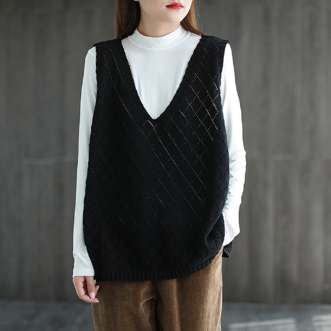 「同梱1万円送料無料」ニットベストレディースチョッキトップス Vネックノースリーブゆったりプルオーバーベストセーター春コーデ ホワイト