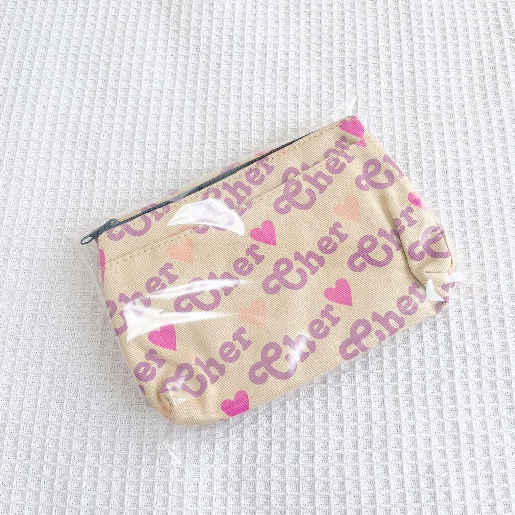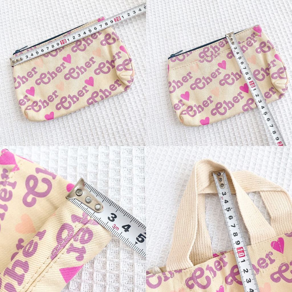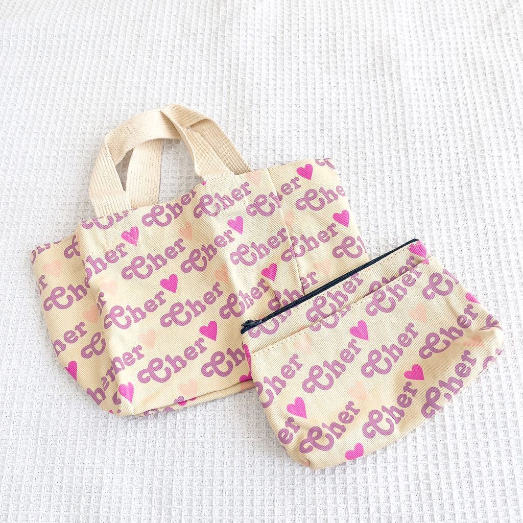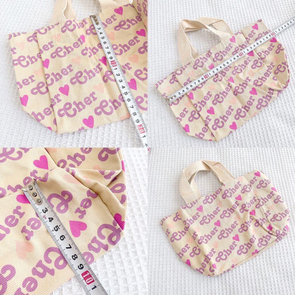 ★新品★2点セット シェルcherミニトートバッグ&ポーチ エコバッグ バッグインバッグ総ロゴ ハート紫パープル ピンク トートバッグ Cher