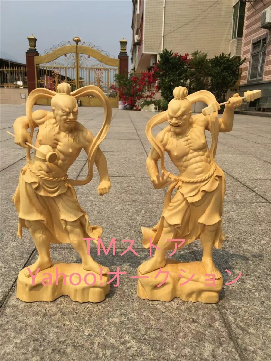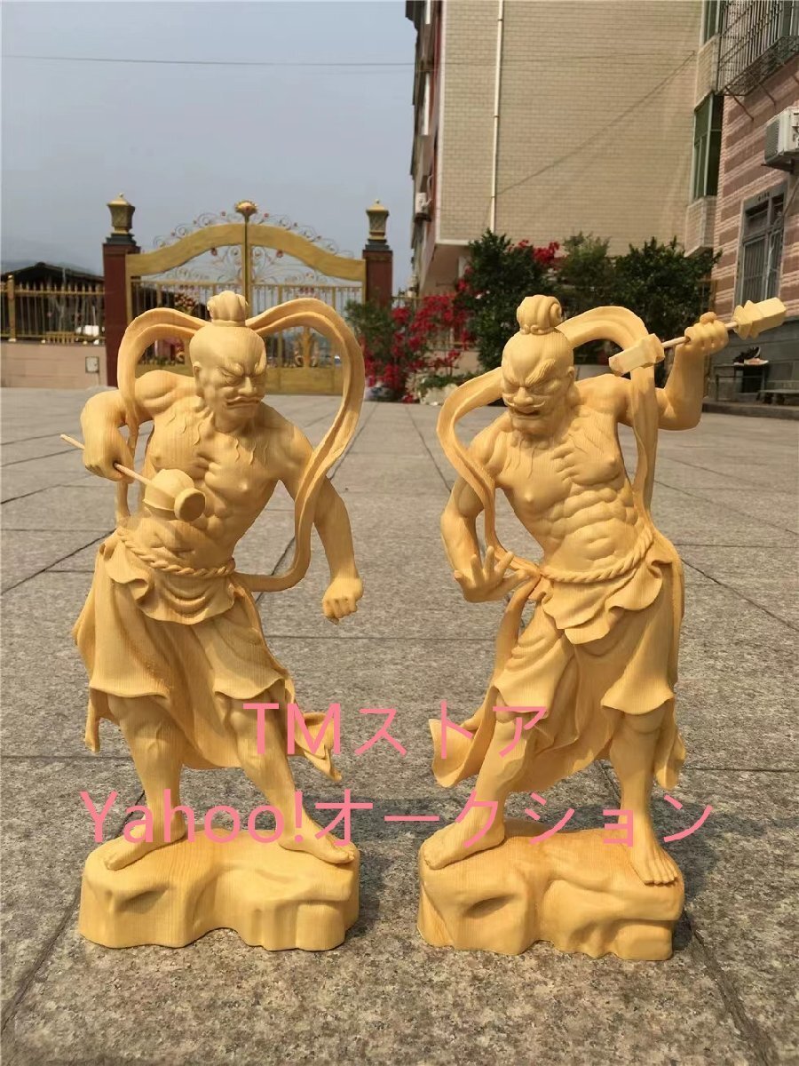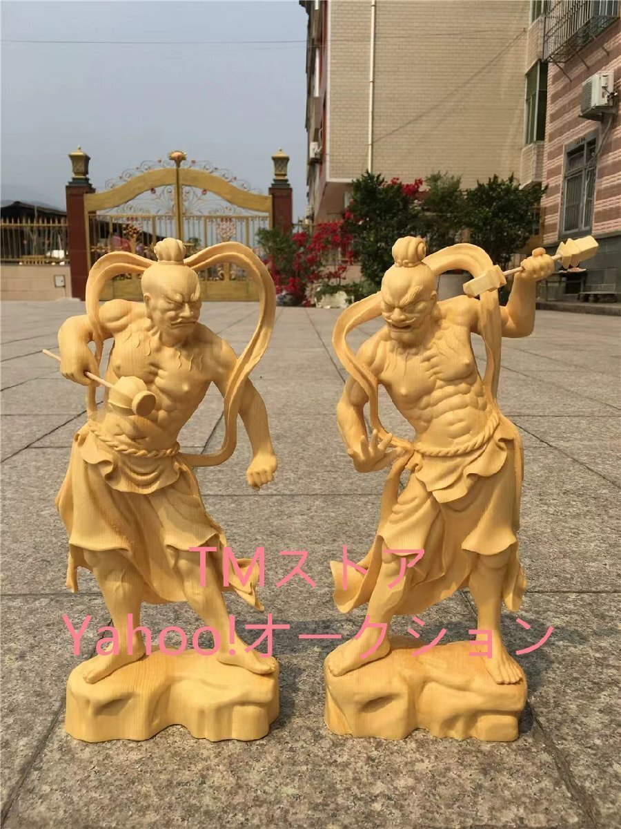 木彫り 仏像【仁王像(金剛力士)】桧木(ヒノキ)総高さ30cm 仏像コレクション 阿形・吽形2種セット
