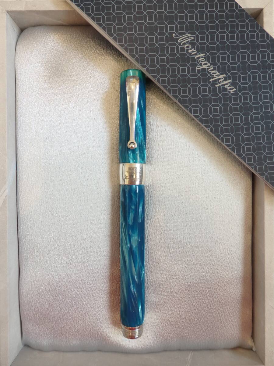 ◆【希少】【送料410円】モンテグラッパ イタリアンプレシャスセルロイド製 シンフォニー ブルー万年筆 ペン先:18K750 F