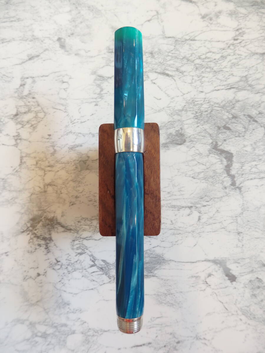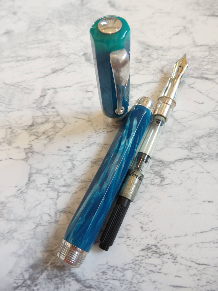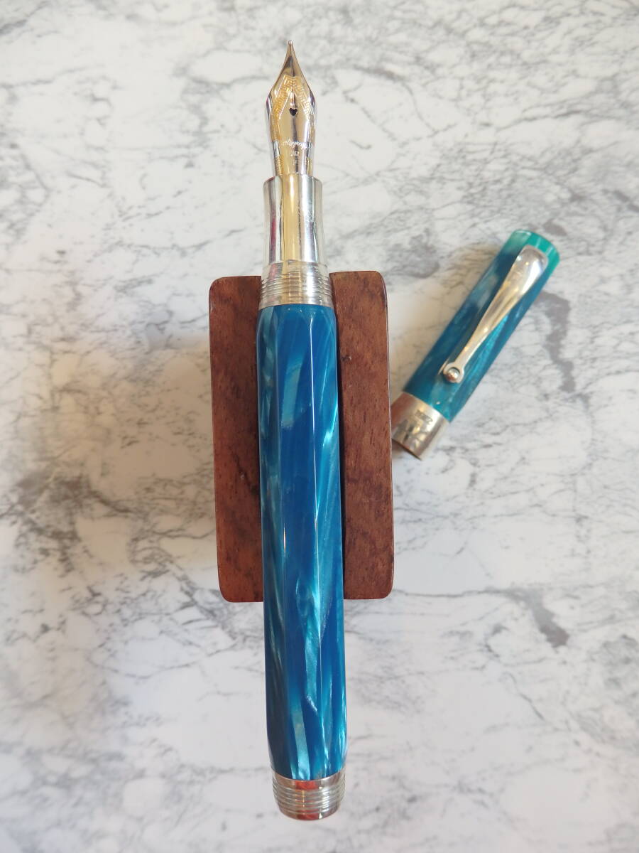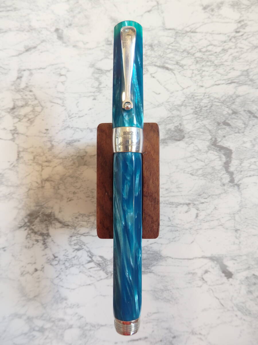 ◆【希少】モンテグラッパ イタリアンプレシャスセルロイド製 シンフォニー ブルー万年筆 ペン先:18K750 F