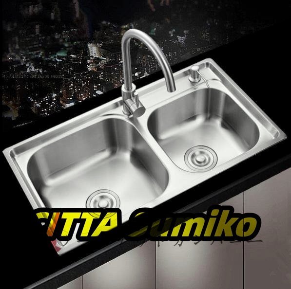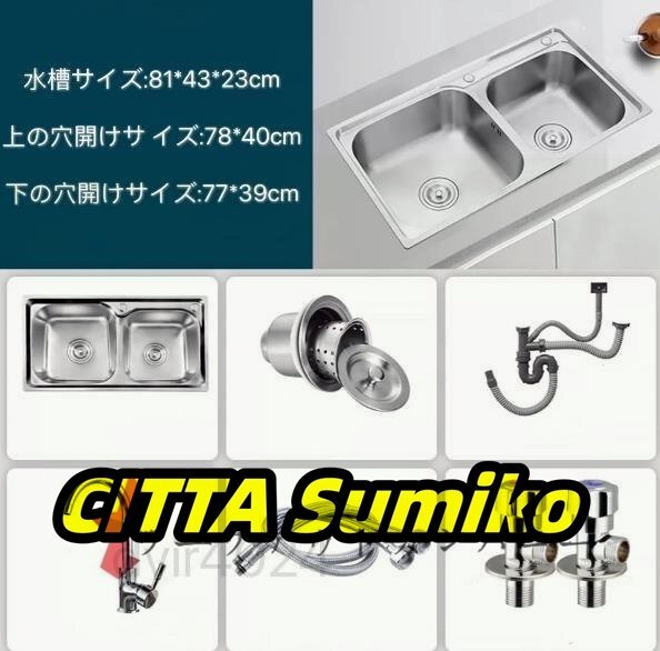 高品質★定番人気☆キッチン用品 ステンレス製流し台 台所 2槽シンク 食器洗いシンク 野菜シンク 肥厚大容量 便利 セット内容多い