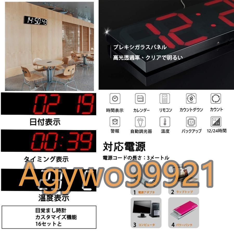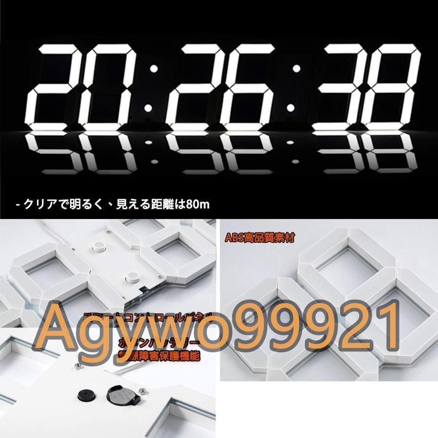 大型デジタル時計 壁掛け置き両用、3d Led 時計 おしゃれ、温度計 ?カレンダー表示付き、led デジタル壁掛け時計 光る、12時間/ 24時間