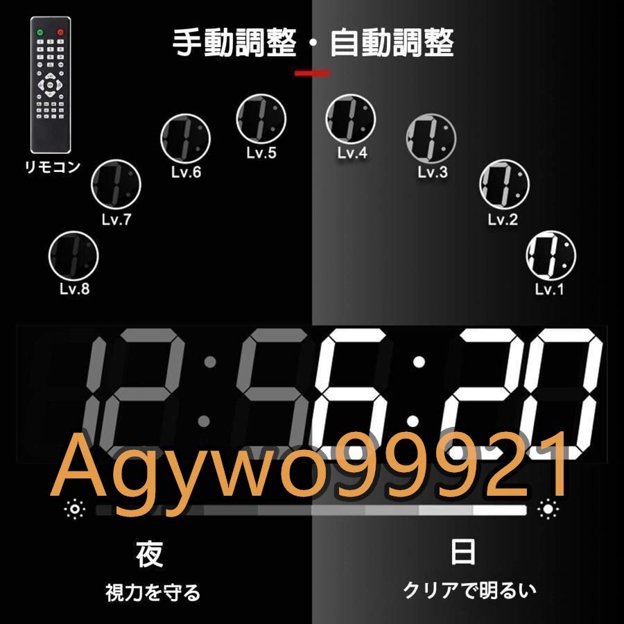 大型デジタル時計 壁掛け置き両用、3d Led 時計 おしゃれ、温度計 ?カレンダー表示付き、led デジタル壁掛け時計 光る、12時間/ 24時間モードスイッチ、明るさ調