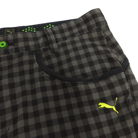 プーマ PUMA パンツ ロゴ刺繍 ストレッチ コットン混 ギンガムチェック グレー ブラック 黒 黄緑 79 メンズ
