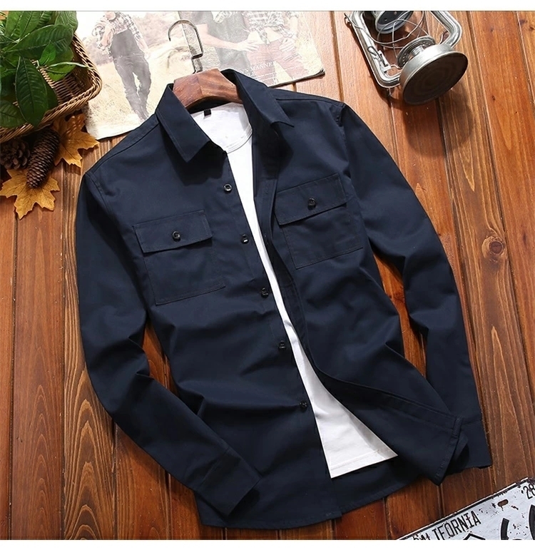 LDL2450# リタリーシャツ メンズ シャツ トップス カジュアルシャツ メンズシャツ スリム 秋服 メンズファッション XL :ダークブルー