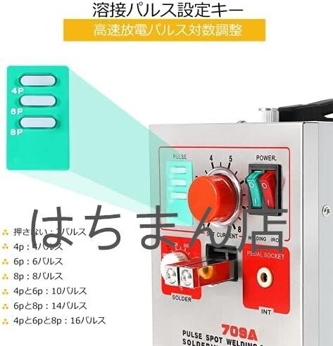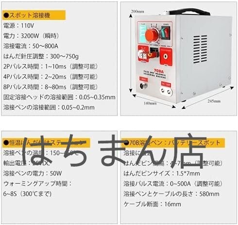 スポット溶接機 固定溶接ヘッド+70B溶接ペン 溶接圧力300~750g バッテリースポット溶接に最適 パルス作業 LED照明 (110V)