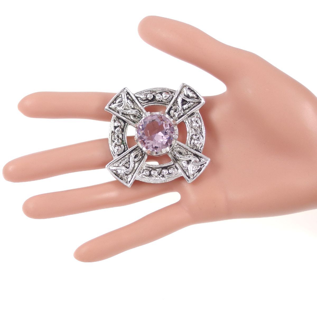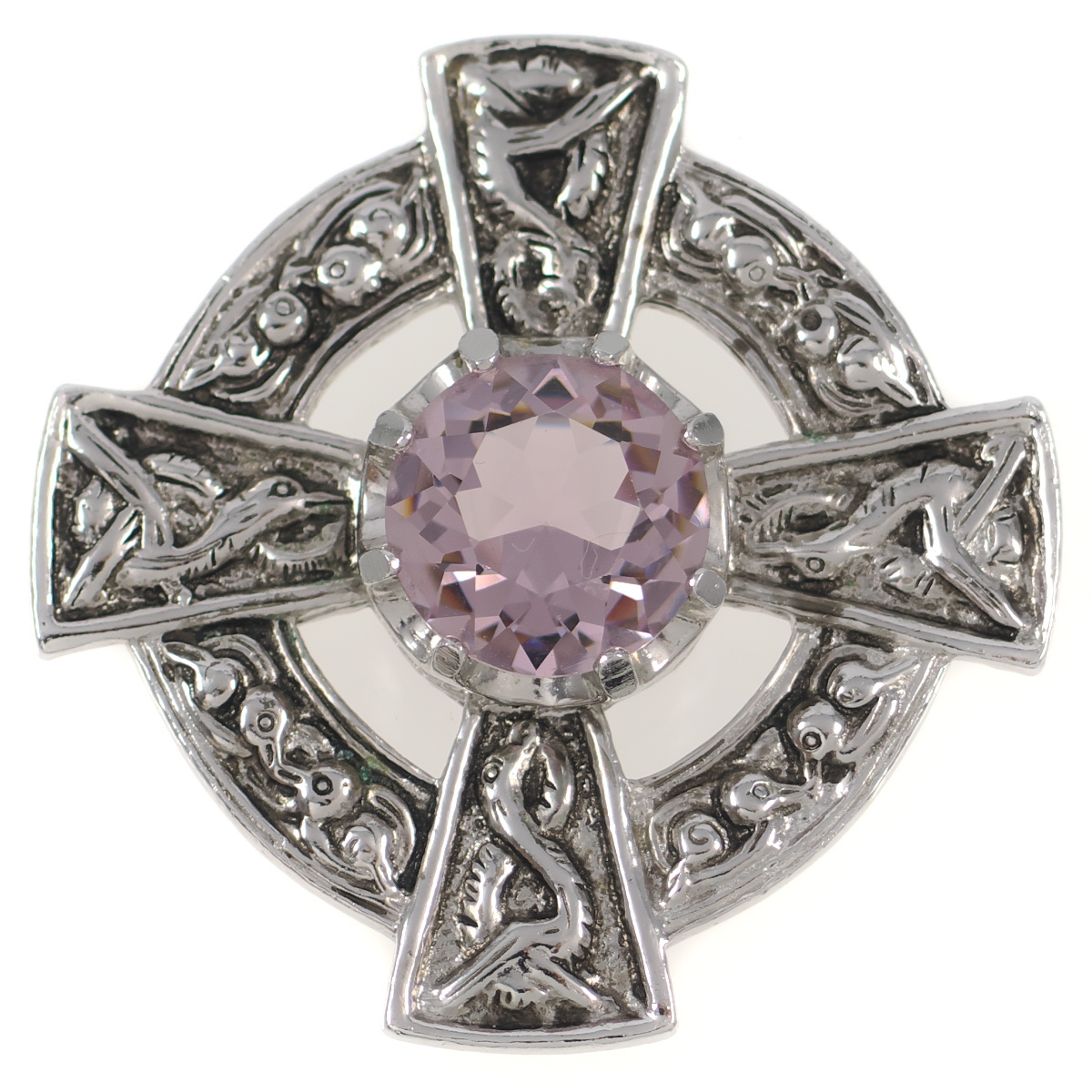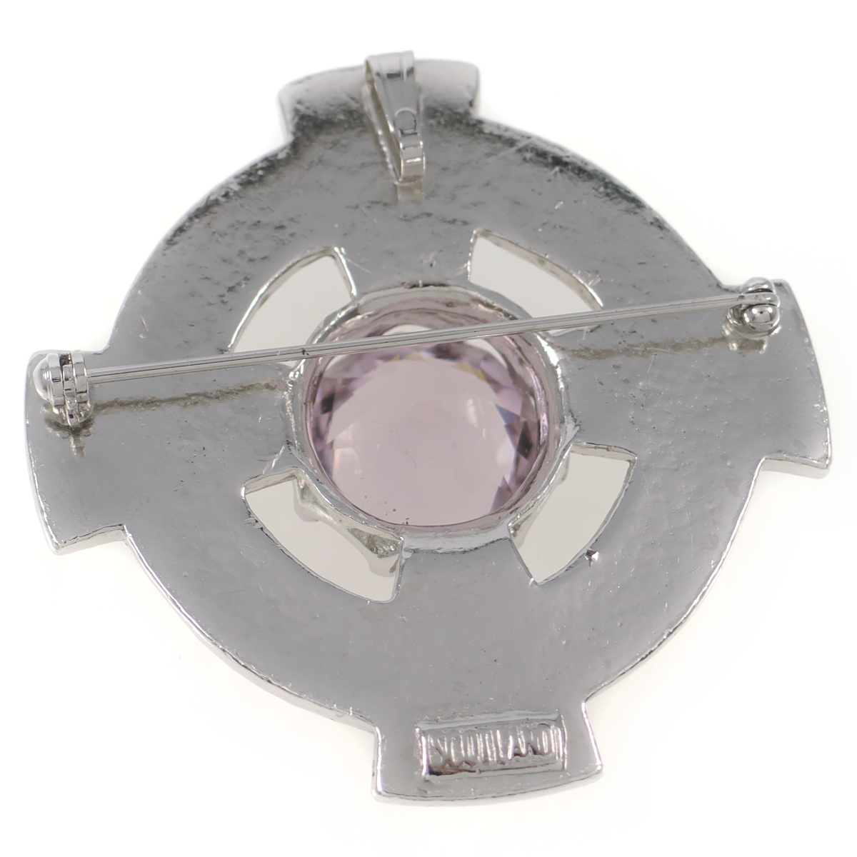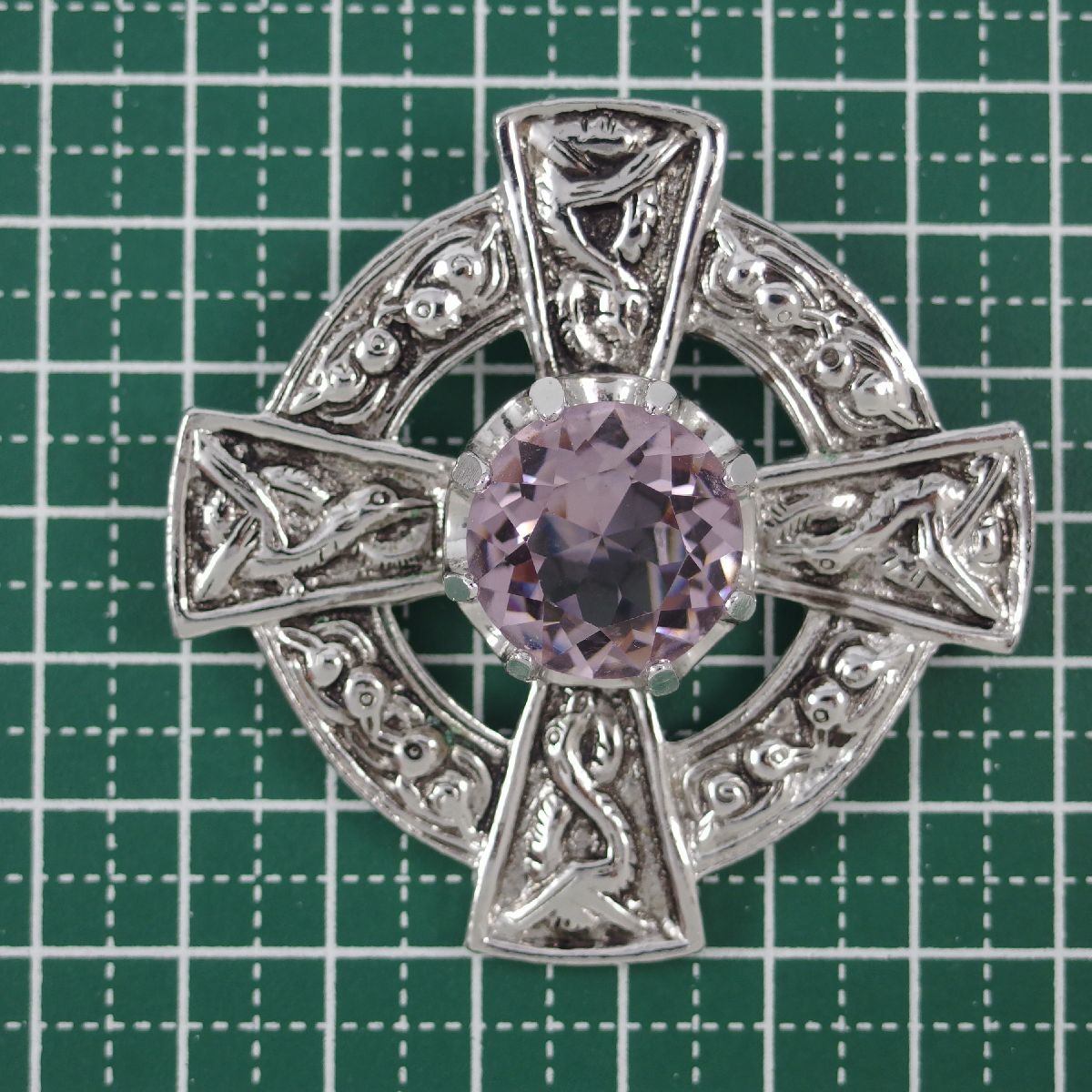 UK2372◆【SCOTLAND】◆ クロスモチーフ ケルト十字 動物柄 アニマル ピンク系ストーン 英国 イギリス ◆ ヴィンテージブローチ ◆