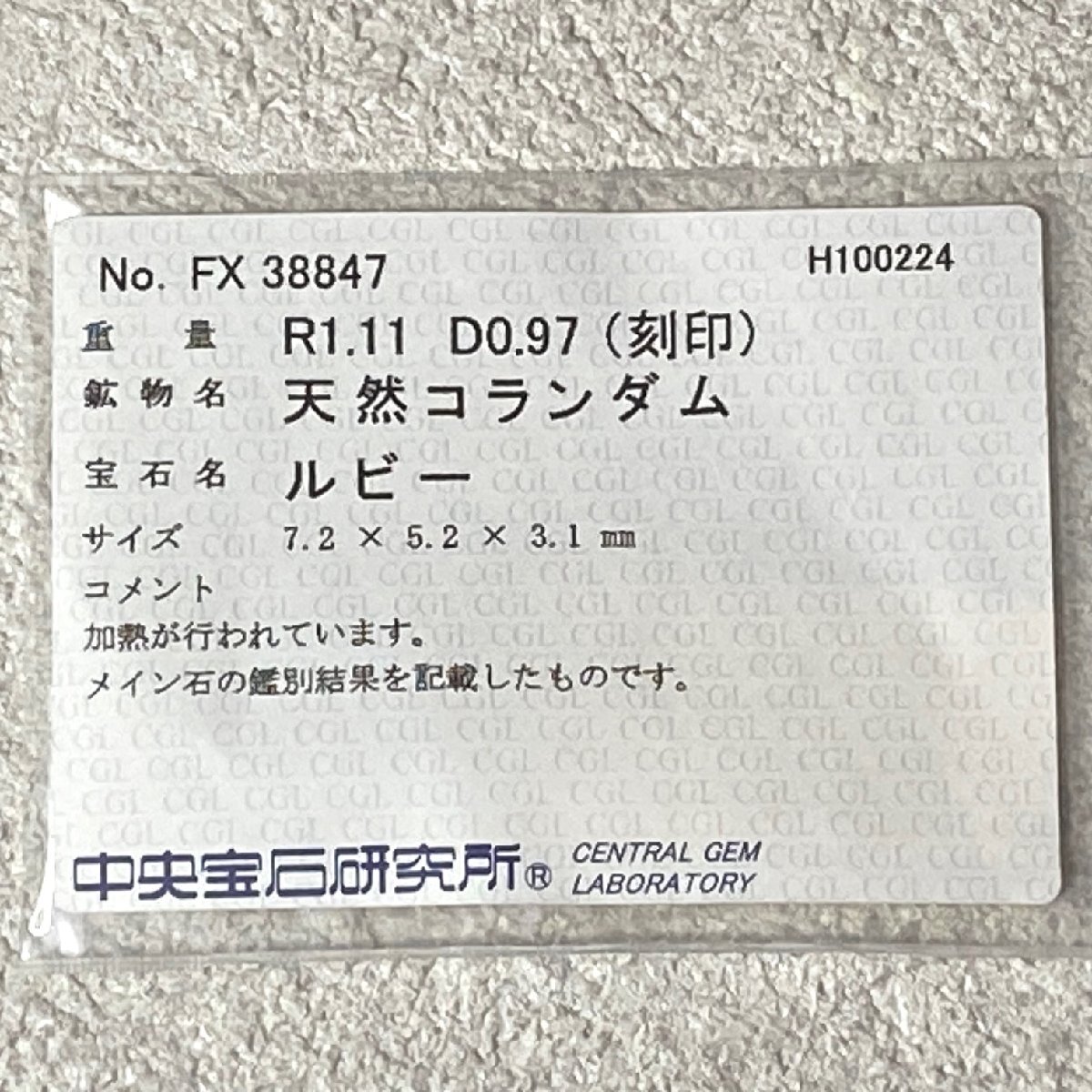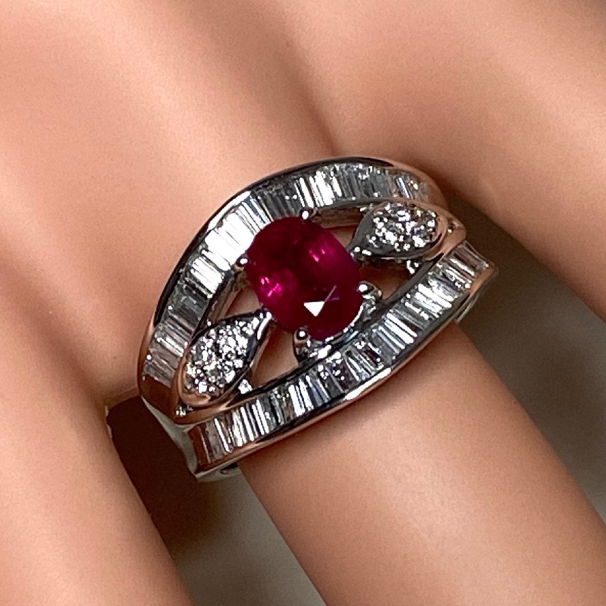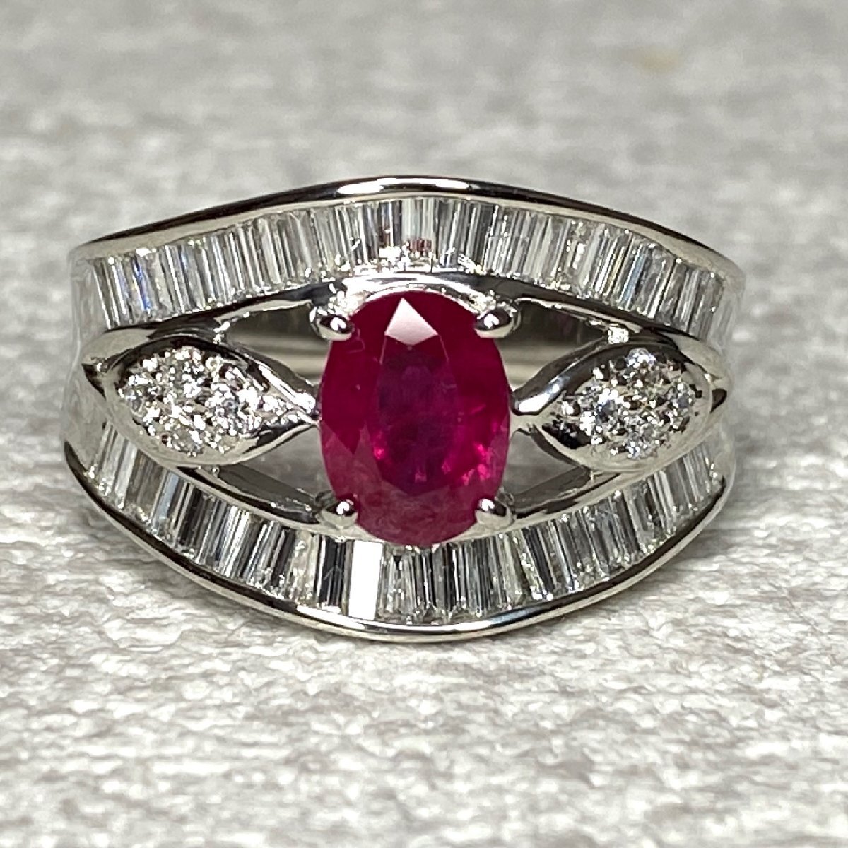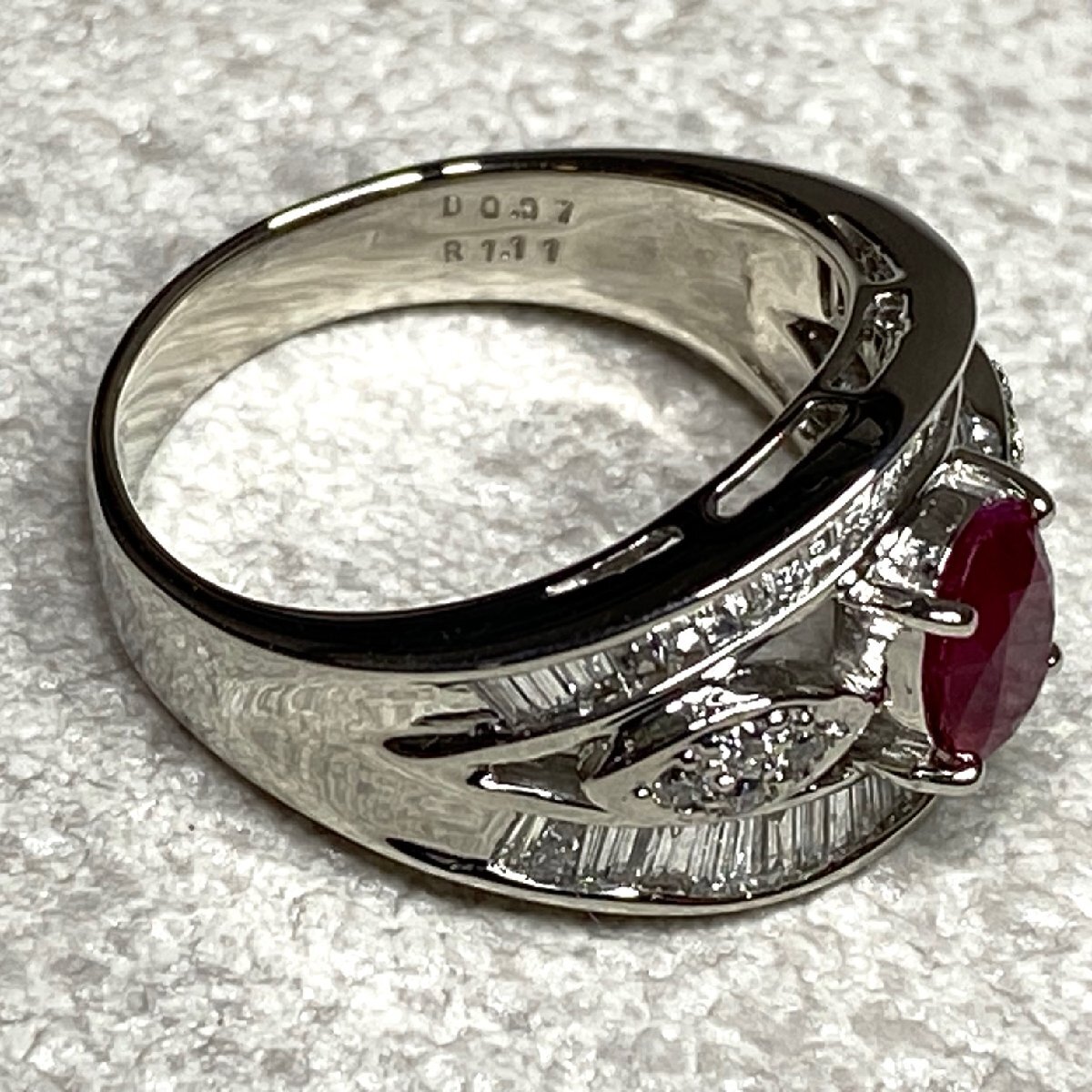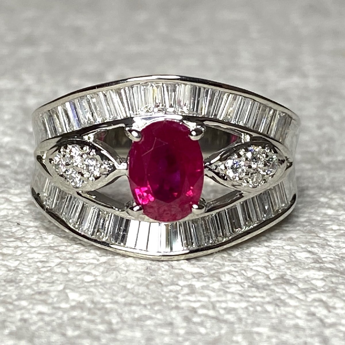 | ☆【KJC】中央宝石研究所ソーティング付き Pt900(プラチナ) ルビー 1.11ct/ダイヤモンド 0.97ct リング 指輪 サイズ約15番 | ||