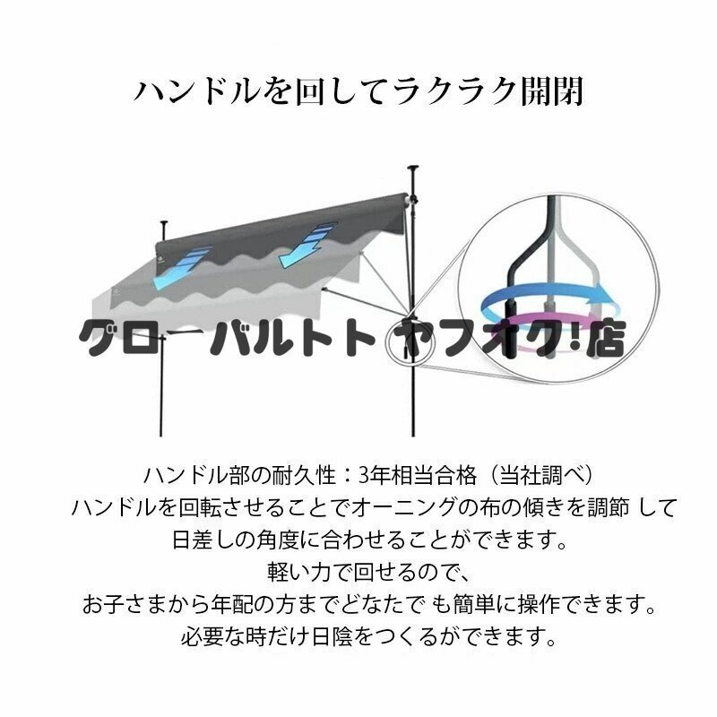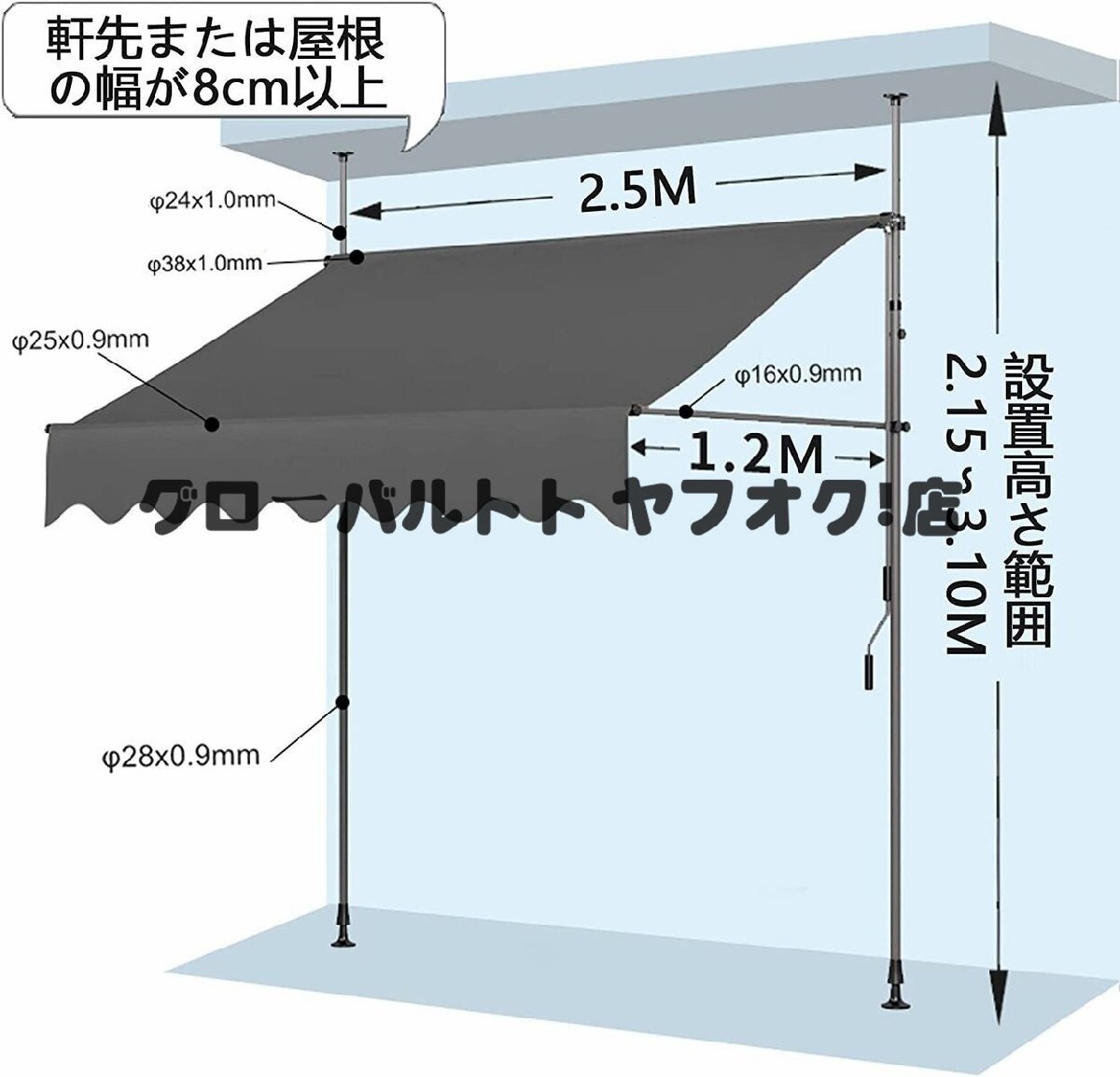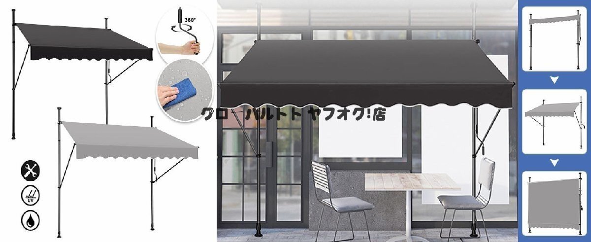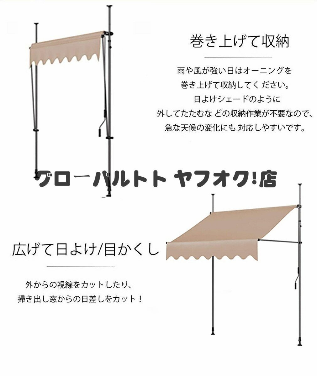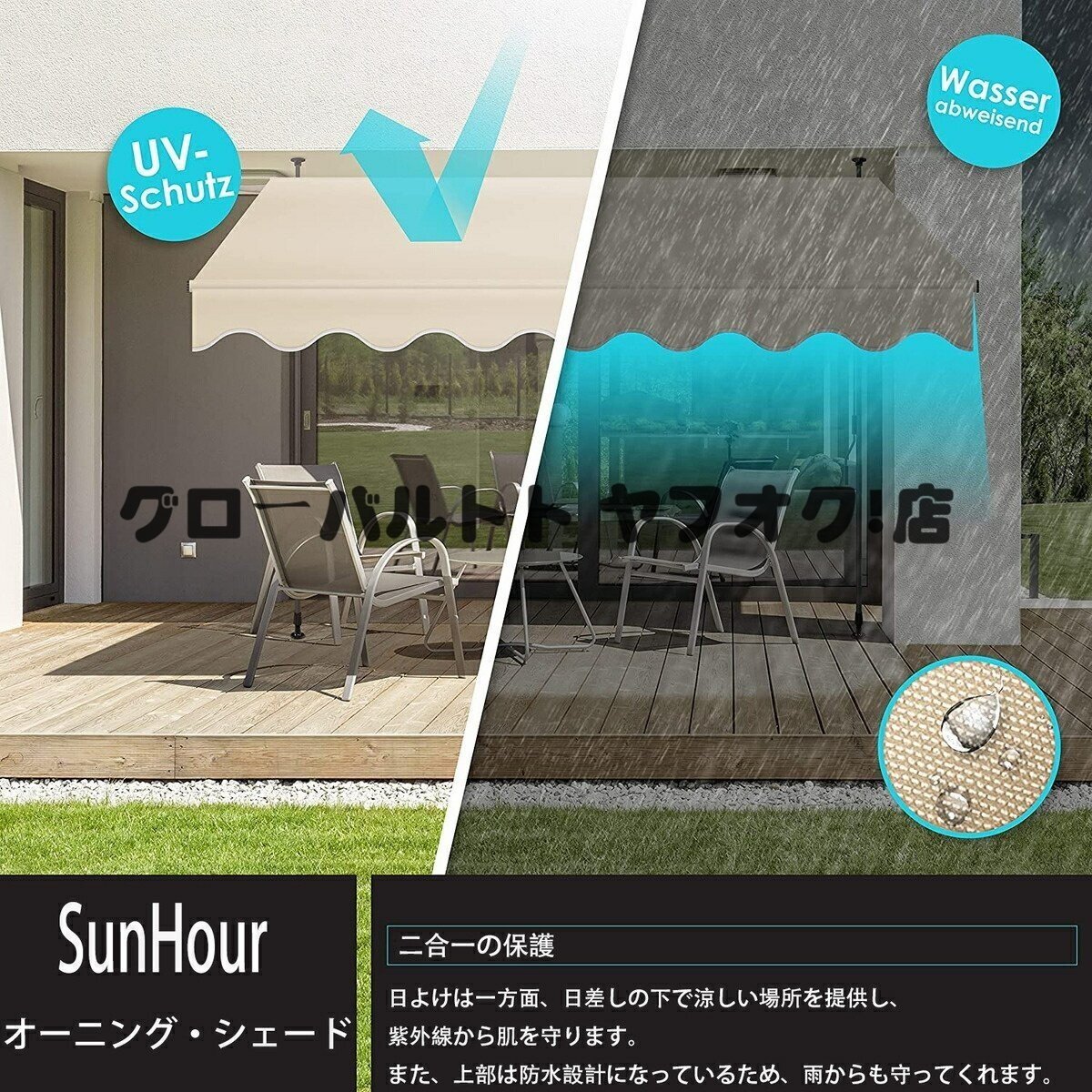 ーニングテント 幅250cm オーニング・シェード 日よけ2.15M-3.1M高さの調節が可能 巻き取り式 サンシェード オーニング ひさし 紫外線S975
