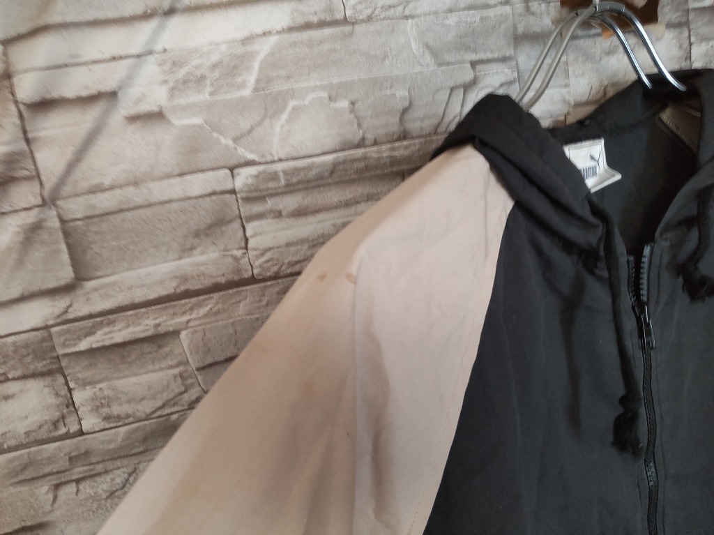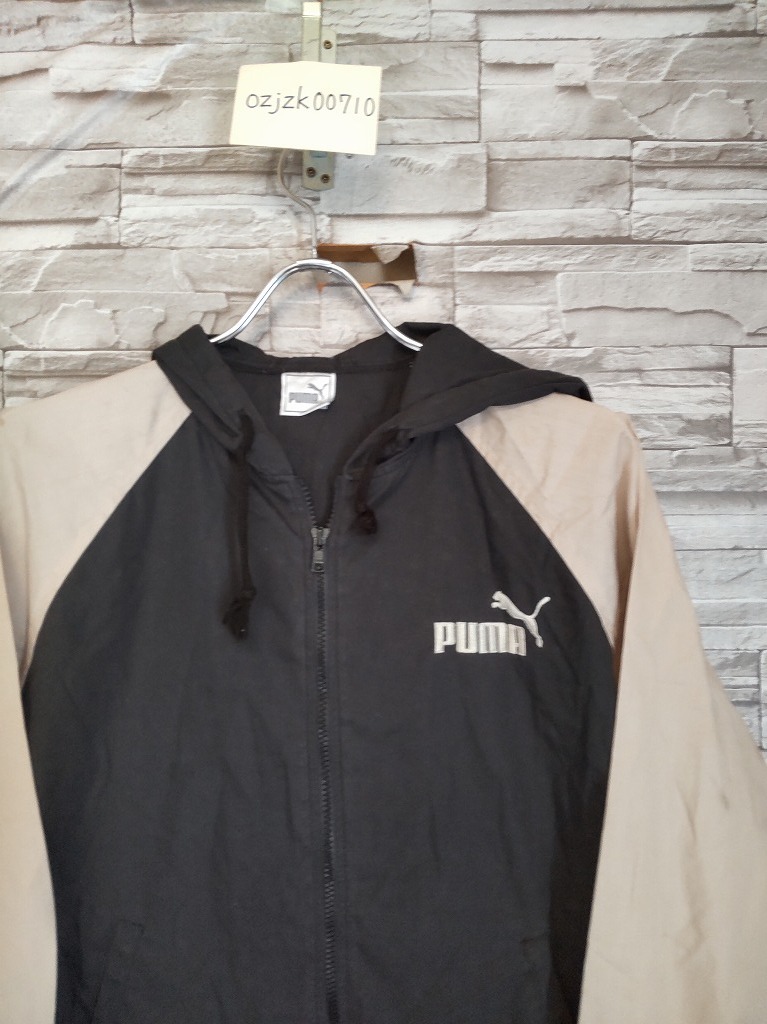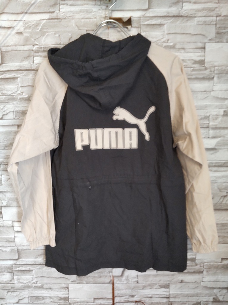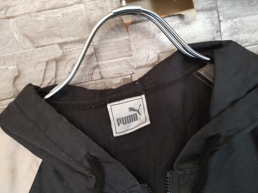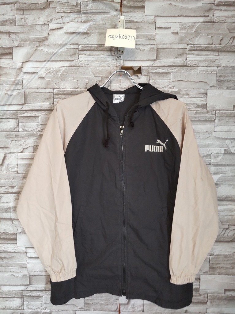 kid's H713 vintgae 90s-00s PUMA プーマ 薄手 ジップアップ パーカー ジャケット 160 ブラック/ベージュ系 ヒットユニオン
