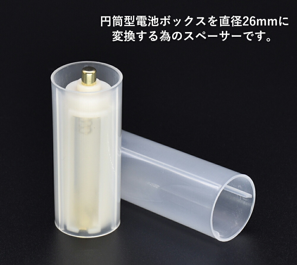 円筒型電池ボックスを直径26mmに変換する為のスペーサーです。