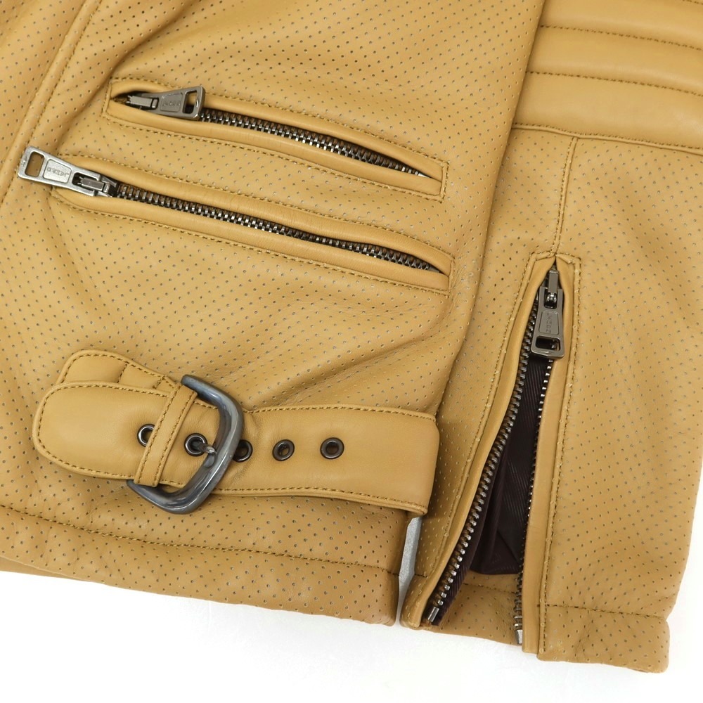 タイトなフィッティングが都会的な雰囲気を与えるライダースジャケットです。滑らかなタッチのラムレザーを用い、肩や肘にはパットを配置。フロントのファスナーデザインも秀逸で、アレンジしての着こなしもお楽しみ頂けます。