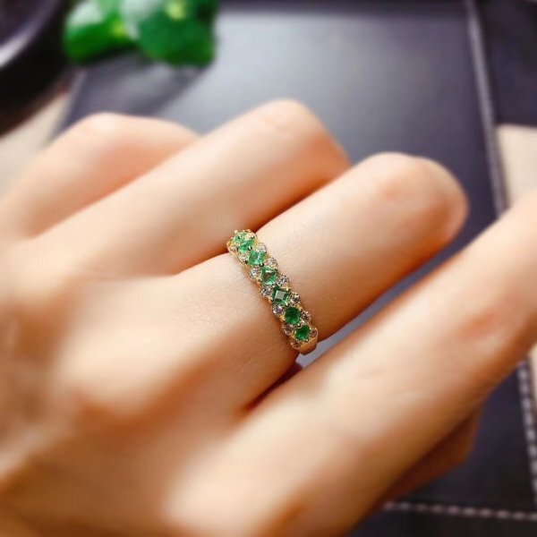 《証明書付き》天然エメラルドシルバーリング、婚約ファッション
