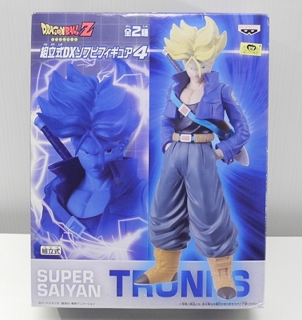 バンプレスト プライズ 組立式DXソフビフィギュア4「スーパーサイヤ人 トランクス」※箱開封・フィギュア小袋未開封・未組立て、箱難あり