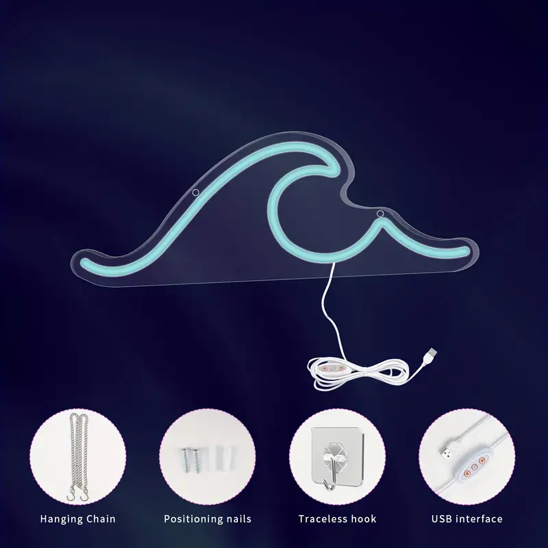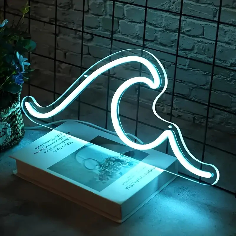 波のLEDネオンサイン ネオン看板 USB照明 カフェやバーなど店舗装飾に雰囲気抜群 ウォールデコ