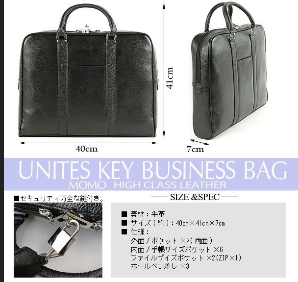 エンボス加工牛床革製ビジネスバッグ 85BK | |||||||||||