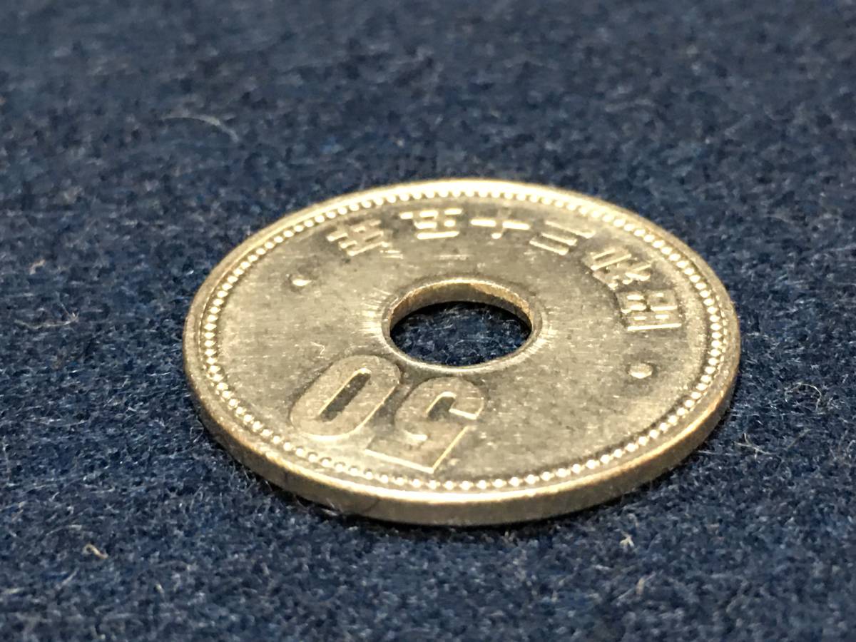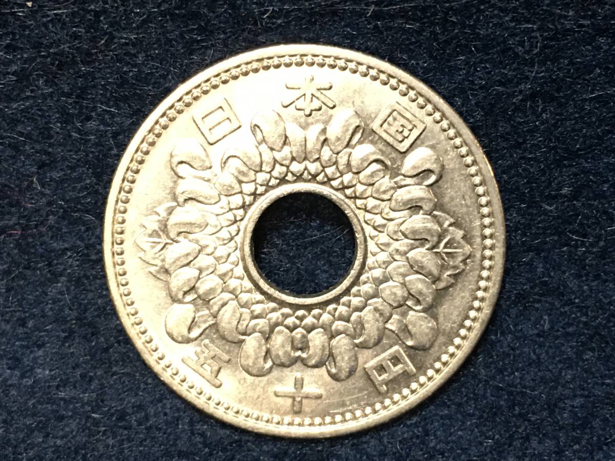 ★【逸品堂】★ 特年 穴 有 昭和 35年 50円 三十五 ニッケル ボールマーカー 昭和レトロ アンティーク 珍品 オブジェ レリーフ 大柄 菊柄