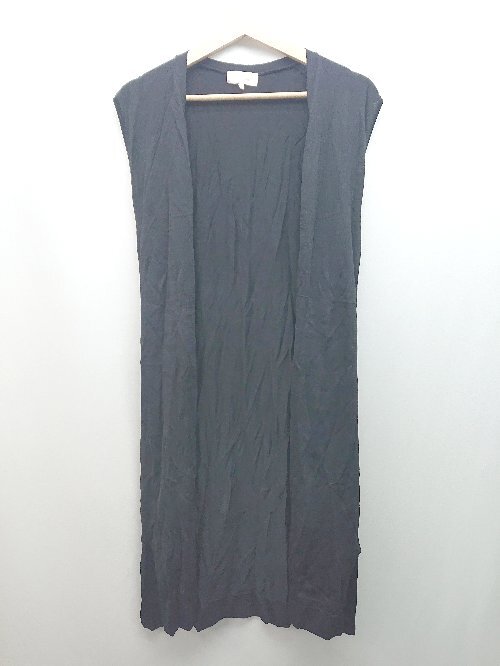 ◇ ALPHA CUBIC カジュアル 薄手 レイヤード シンプル ジレ カーディガン ロングベスト サイズM ブラック レディース E