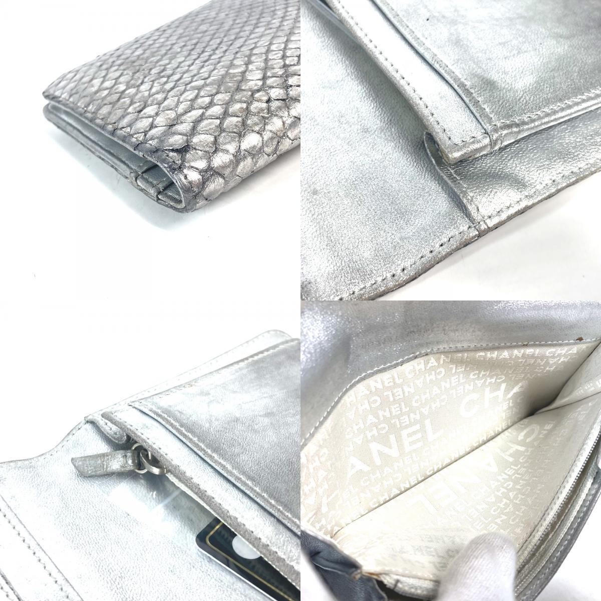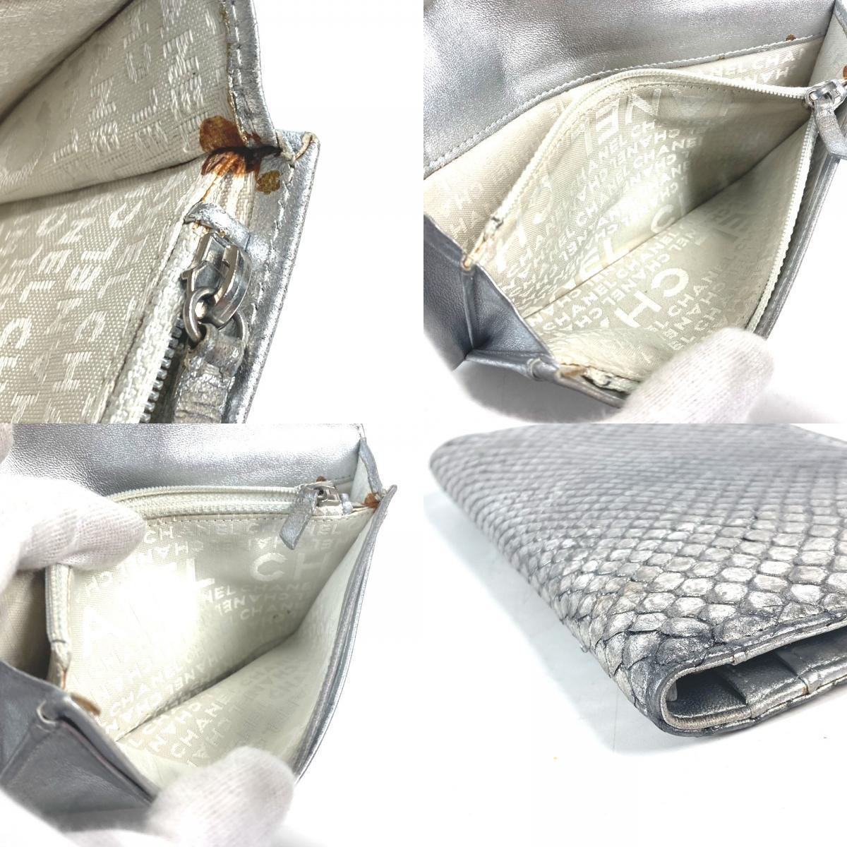 CHANEL シャネル A34303 2つ折り CC ココマーク ロングウォレット 07P 長財布 シルバー レディース【中古】