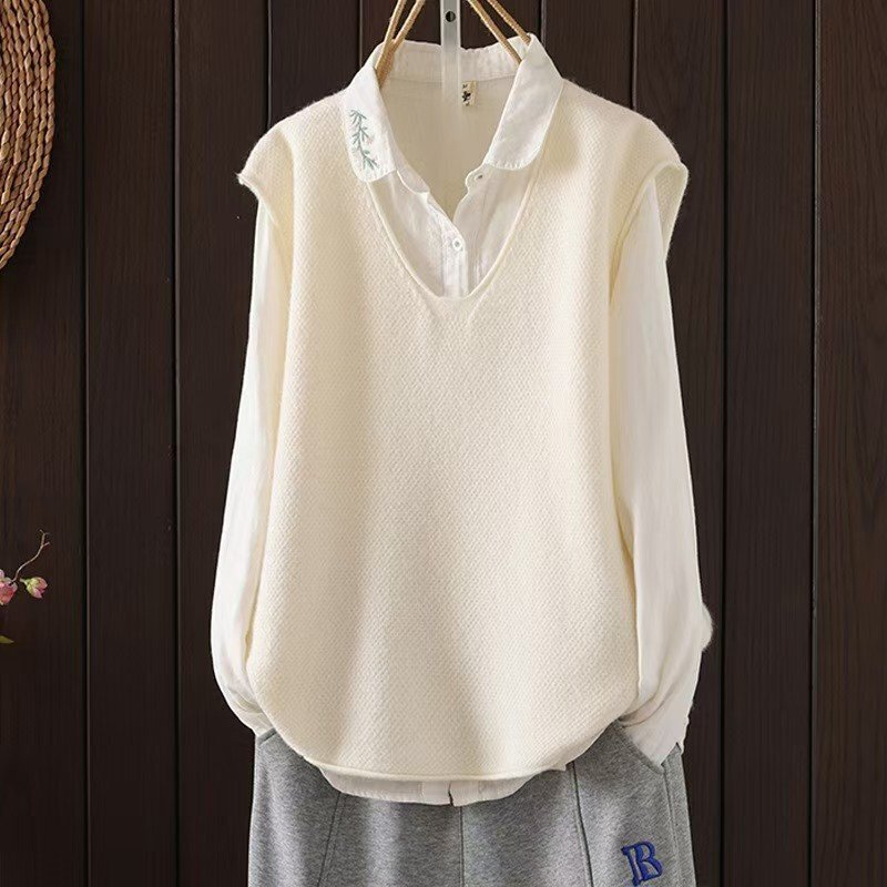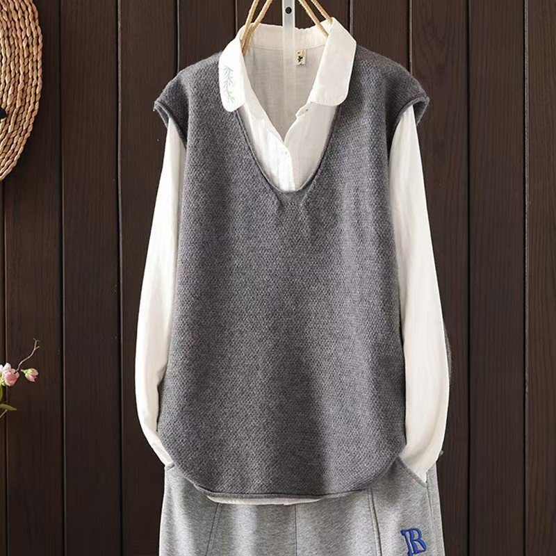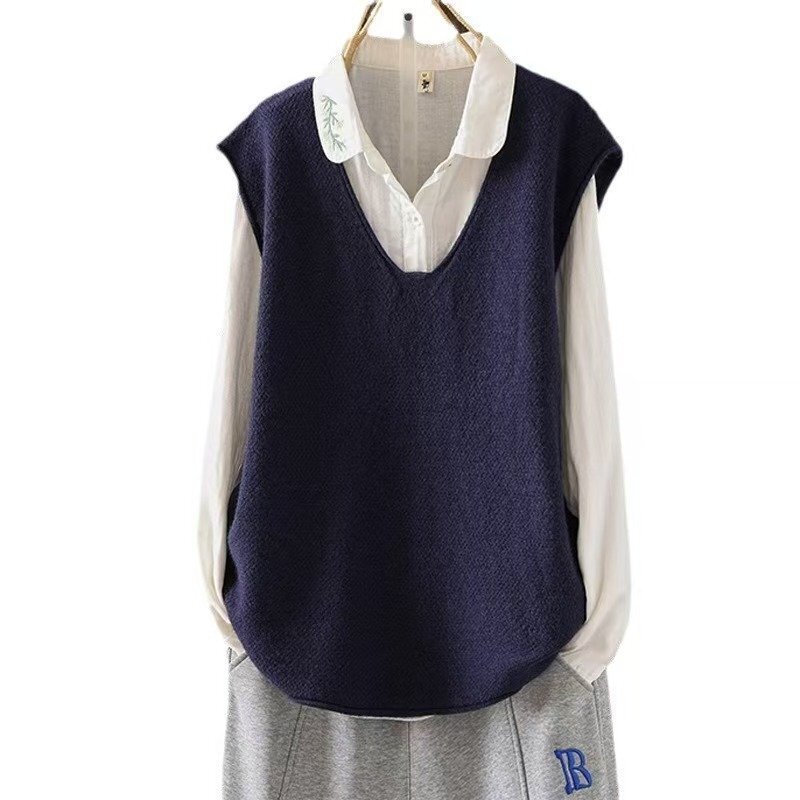 OHJ966☆新品秋冬 上質おしゃれ ウール混 ニット Vネック 無地柄 袖なし ニットセーターベスト F