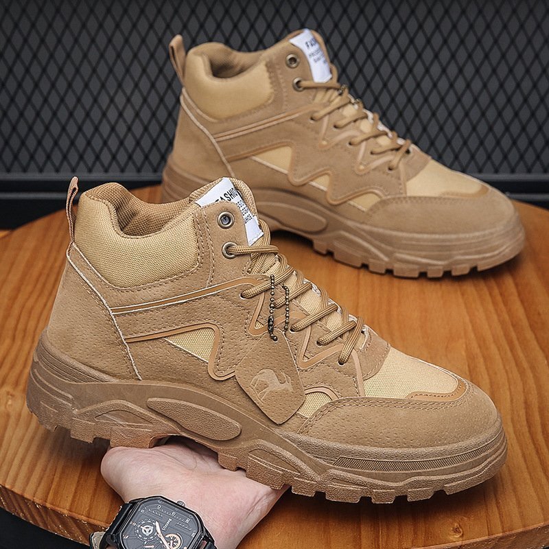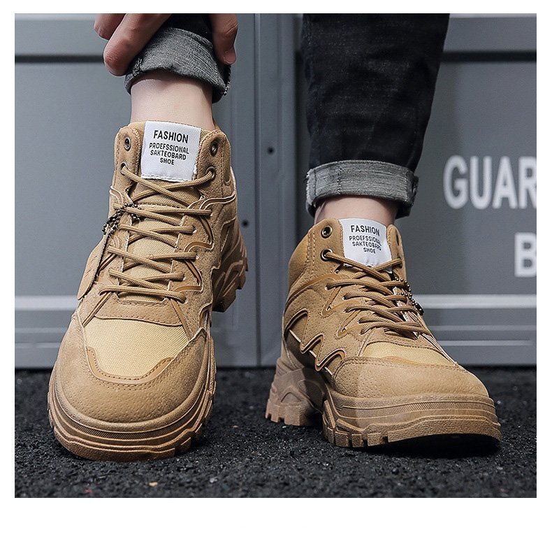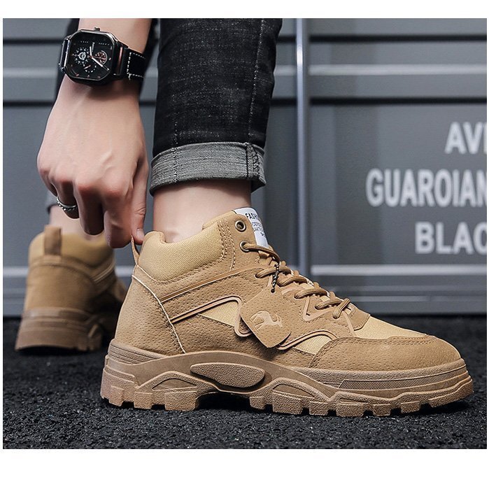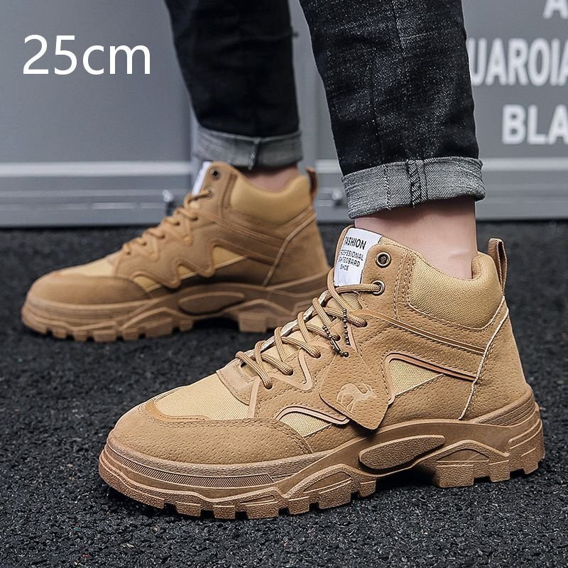 メンズブーツ ワークブーツ 四季兼用 メンズ アウトドア シューズ ハイカット ショートブーツ 歩きやすい 靴 春秋 カーキ25cm LB100
