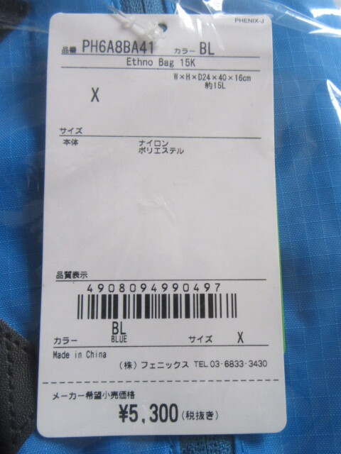・phenix(フェニックス)の、キッズ用デイパック 「Ethno Bag 15K、品番:PH6A8BA41、カラー:BL(ブルー)、サイズ:Xサイズ、容量:約15L」、 です。