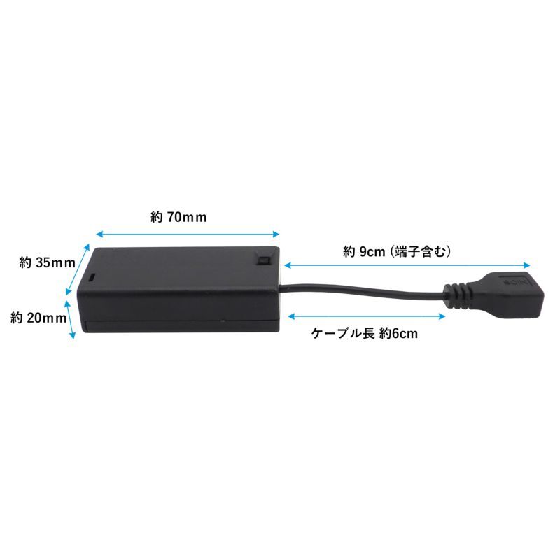 ●サイズ (電池ボックス) 約70 × 35 × 20mm (USBケーブル) 約9cm (端子含む) ケーブル長 約6cm