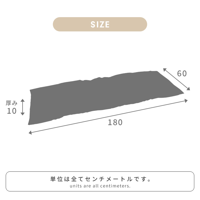 | 通常の座布団の3倍以上、長さ180cmで一人はもちろん、二人でもゆったり座れるロングサイズの長座布団。 たっぷり中綿を入れることで、ふっくらとした座り心地に仕上げ、わたのヨレ・ズレ防止のための和止めが6か所施してあります。 座ったり、ごろ寝したり、赤ちゃんのお昼寝マット、壁にあてて座椅子代わりに、ペットのお座敷座布団としても◎ シンプルな無地のカラーが和室だけでなく洋室にもぴったり。 (いずれのカラーも底面は黒のナイロン系生地となっております。) |