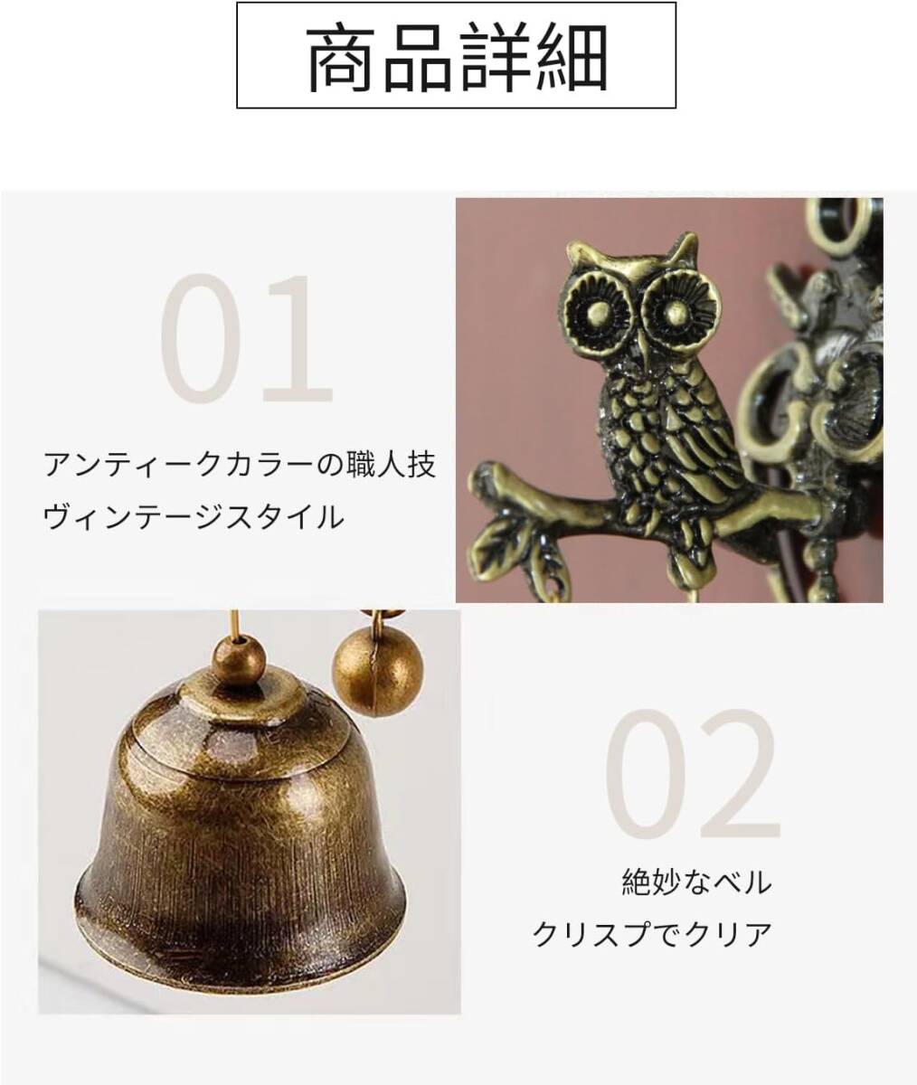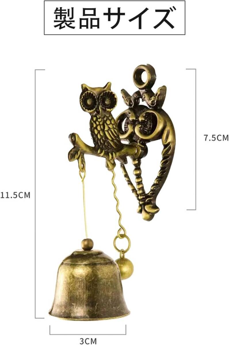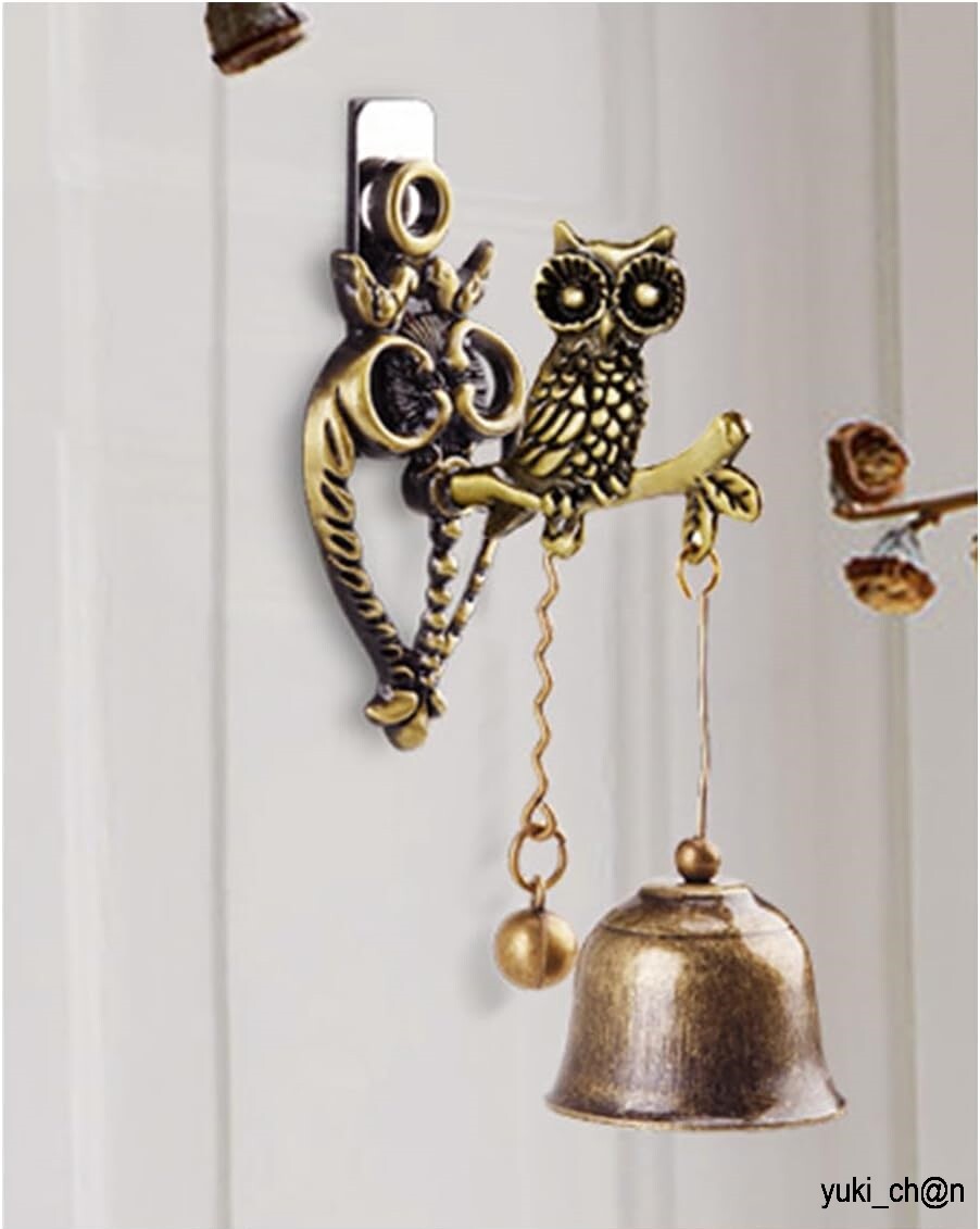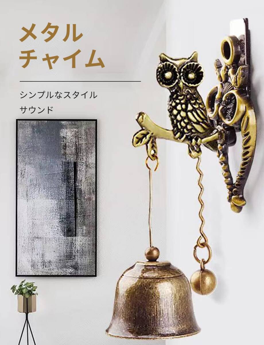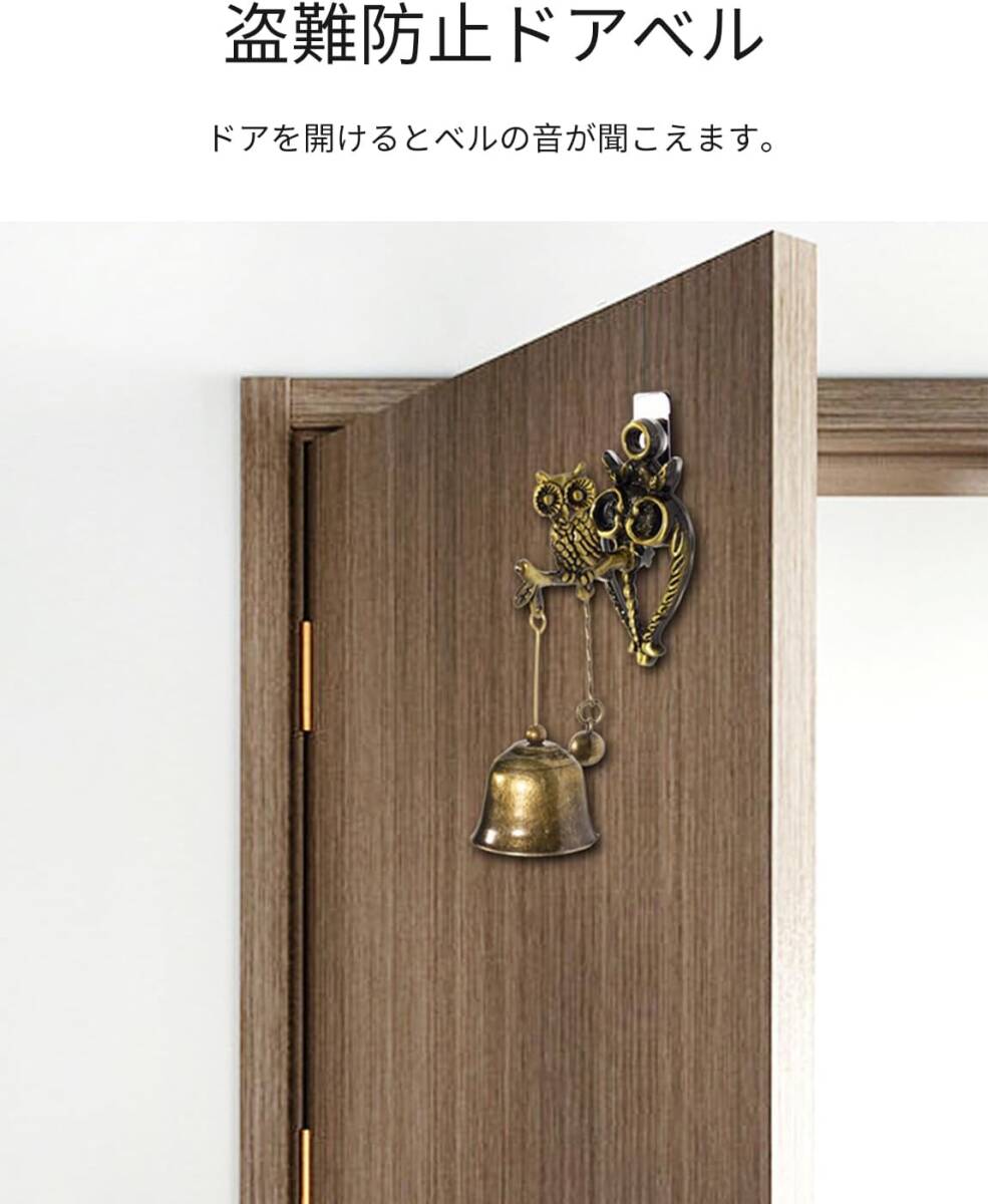 ドアベル アンティドアベル 玄関 ドア用 鈴 アンティーク調 磁石 風鈴 取付簡単 バー 飲食店 冷蔵庫ドア 壁掛け 綺麗な音 縁起物 梟 不苦労