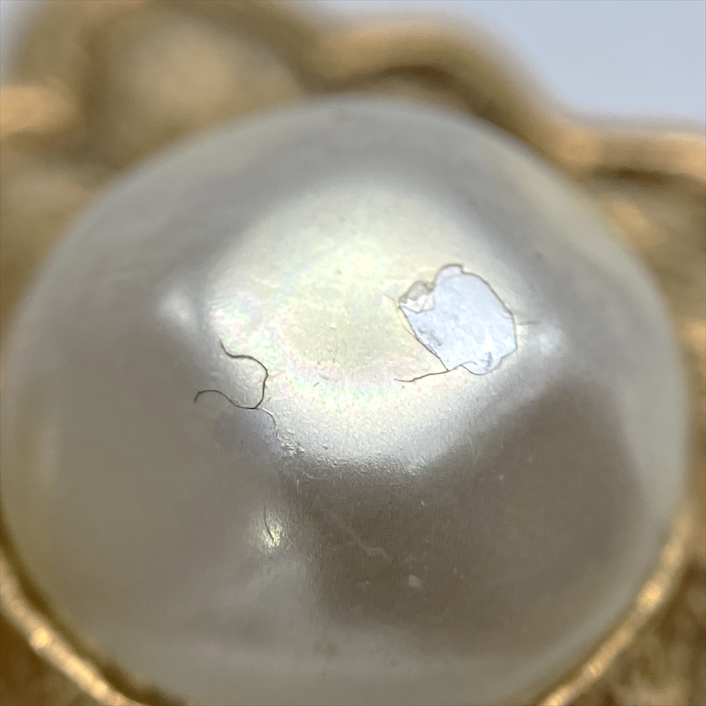 状態詳細 | 金属部分:傷、打痕(可視)、汚れ、変色 フェイクパール:小傷(多数)、一部塗装剥げ | |