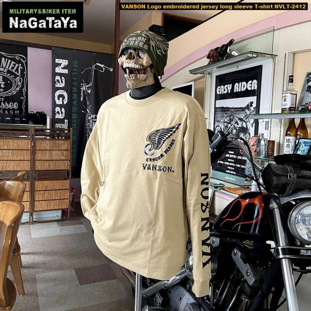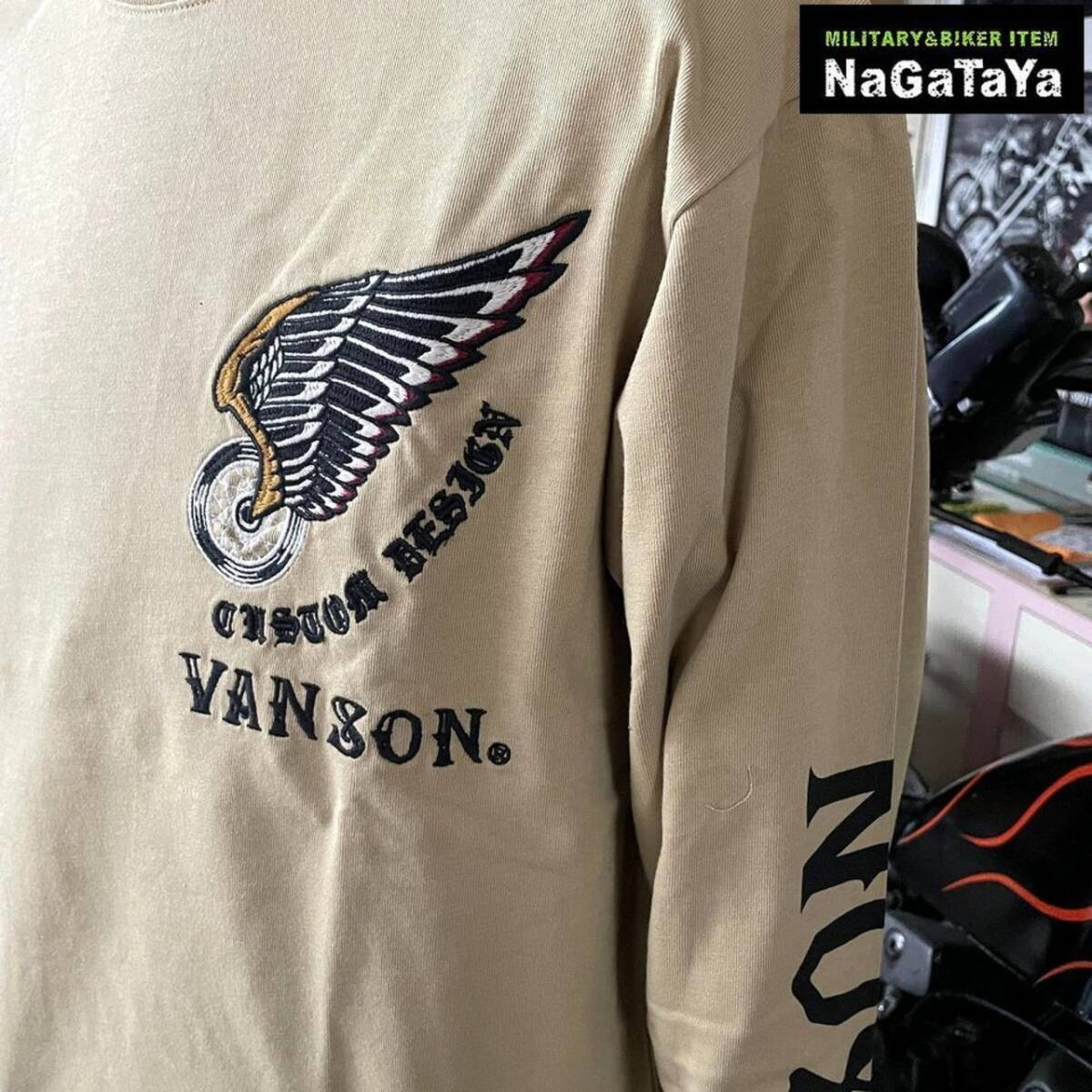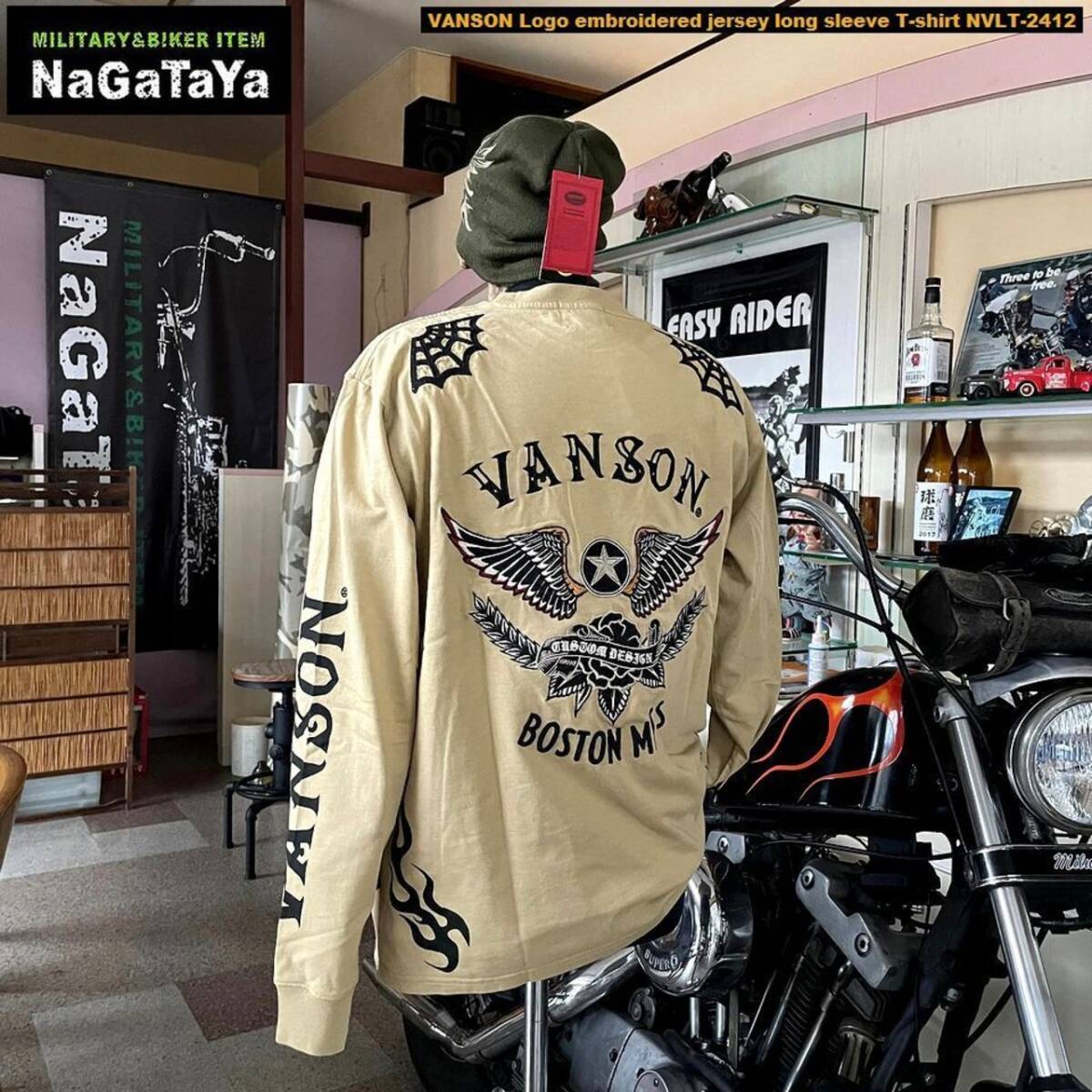 VANSON バンソン ロゴ刺繍 天竺 長袖Tシャツ スパイダー BIKER ロングスリーブTシャツ メンズ NVLT-2412 BIKE サンドベージュ Lサイズ