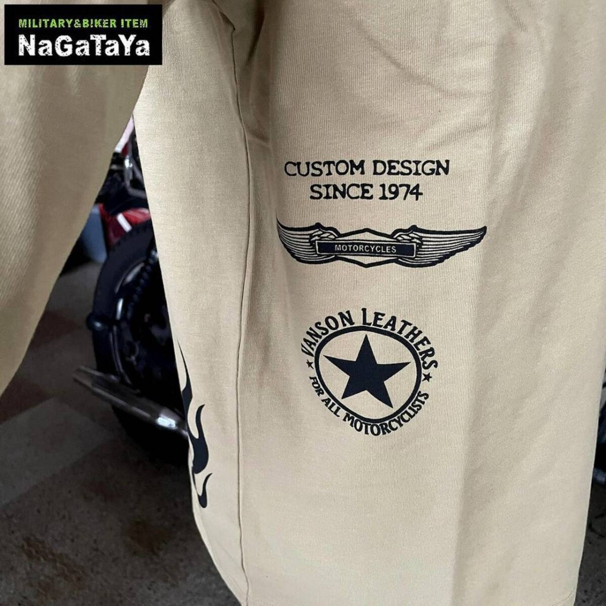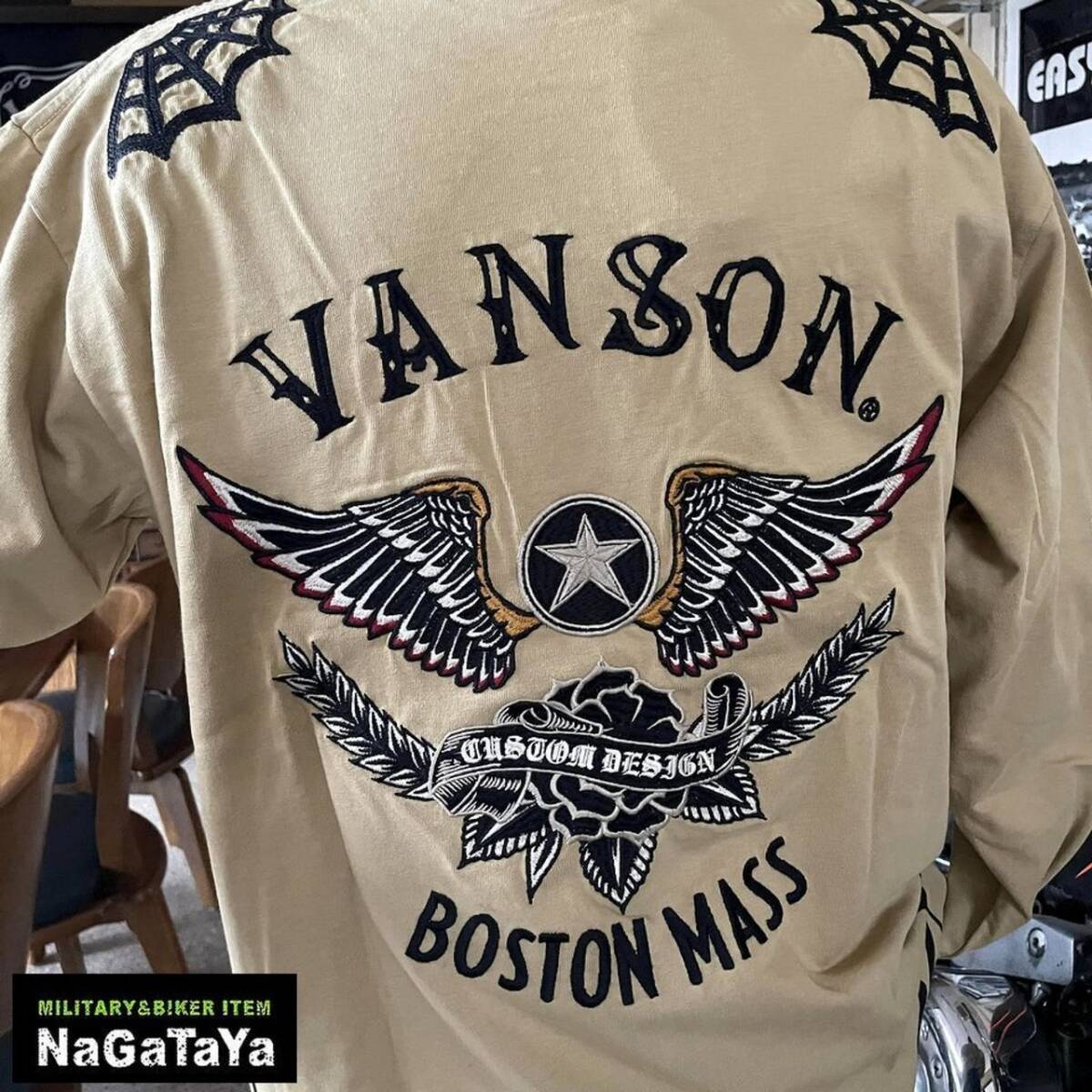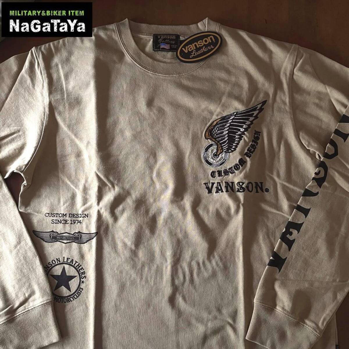VANSON バンソン ロゴ刺繍 天竺 長袖Tシャツ スパイダー BIKER ロングスリーブTシャツ メンズ NVLT-2412 BIKE サンドベージュ Lサイズ