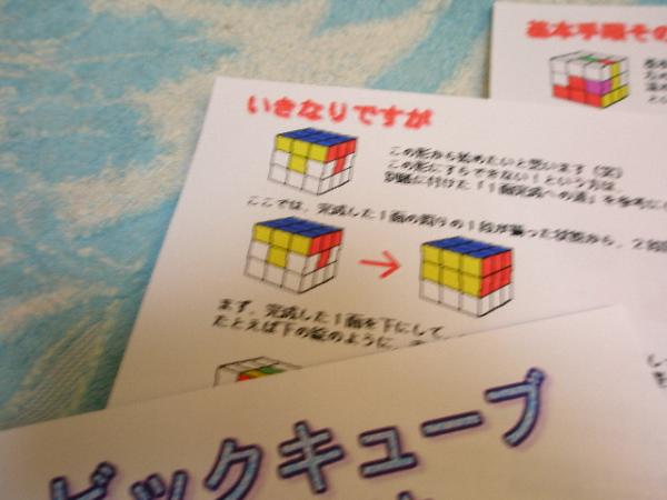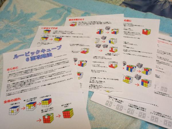 数年前に魔が差して作ったルービックキューブのマニュアルを、今回再びバージョンアップしたものをお譲りします。かなり昔にサイトやブログ等で公開していましたが、結構な数の方に「解けました!」と言っていただけたシロモノをより分かりやすくしたバージョンです。時間の都合で「1面完成はできる人向け」になっていますので、写真2枚目の「いきなりですが」の下の画像の形までは持っていけるという方向けの内容となっております。1面完成すらできない!という方はご遠慮ください。また、マニュアルには「別紙・1面完成への道」もあるように書いてありますが、本編のみとなります。