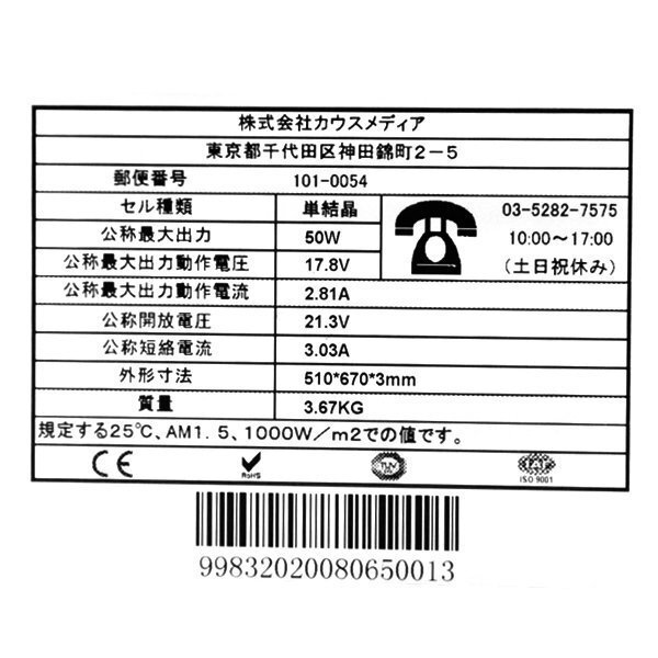 50W 単結晶 ソーラーパネル アルミフレーム |