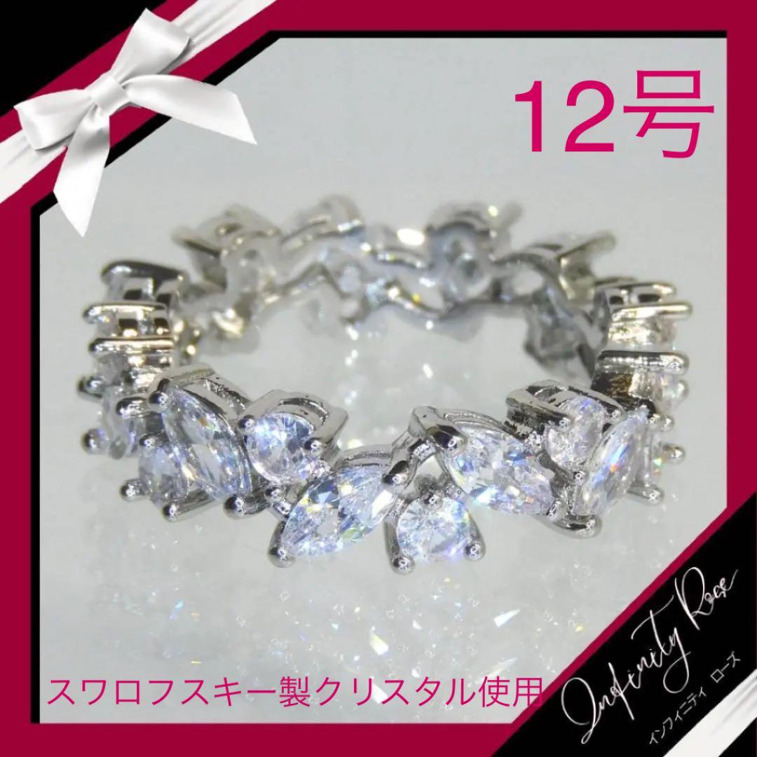 (1014)12号 シルバー×クリアランダム スワロフスキー製クリスタル使用 リング 高価爪留め