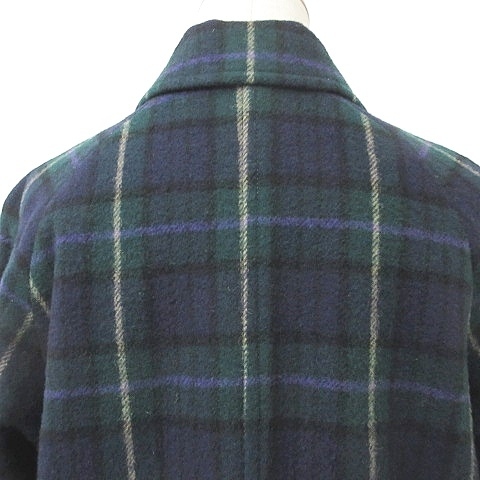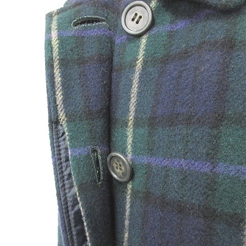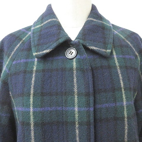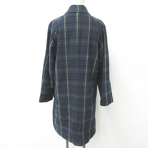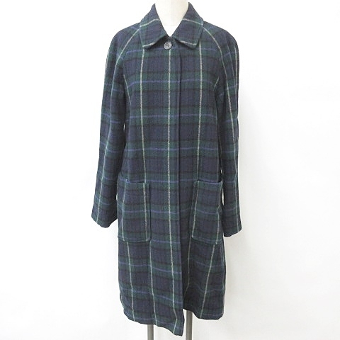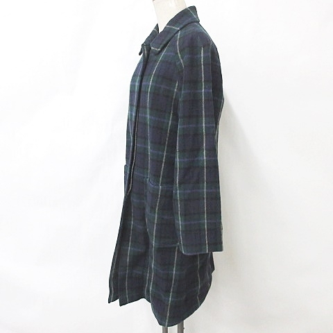 ベスコムスタジオ BETH COMB STUDIO コート ステンカラーコート 比翼仕立て ウール チェック 緑 紺 グリーン ネイビー レディース