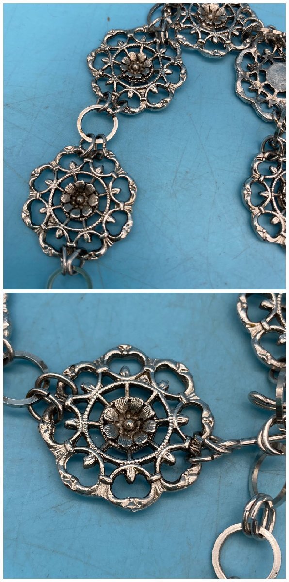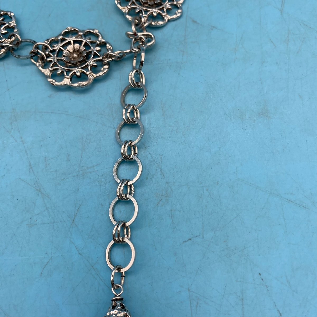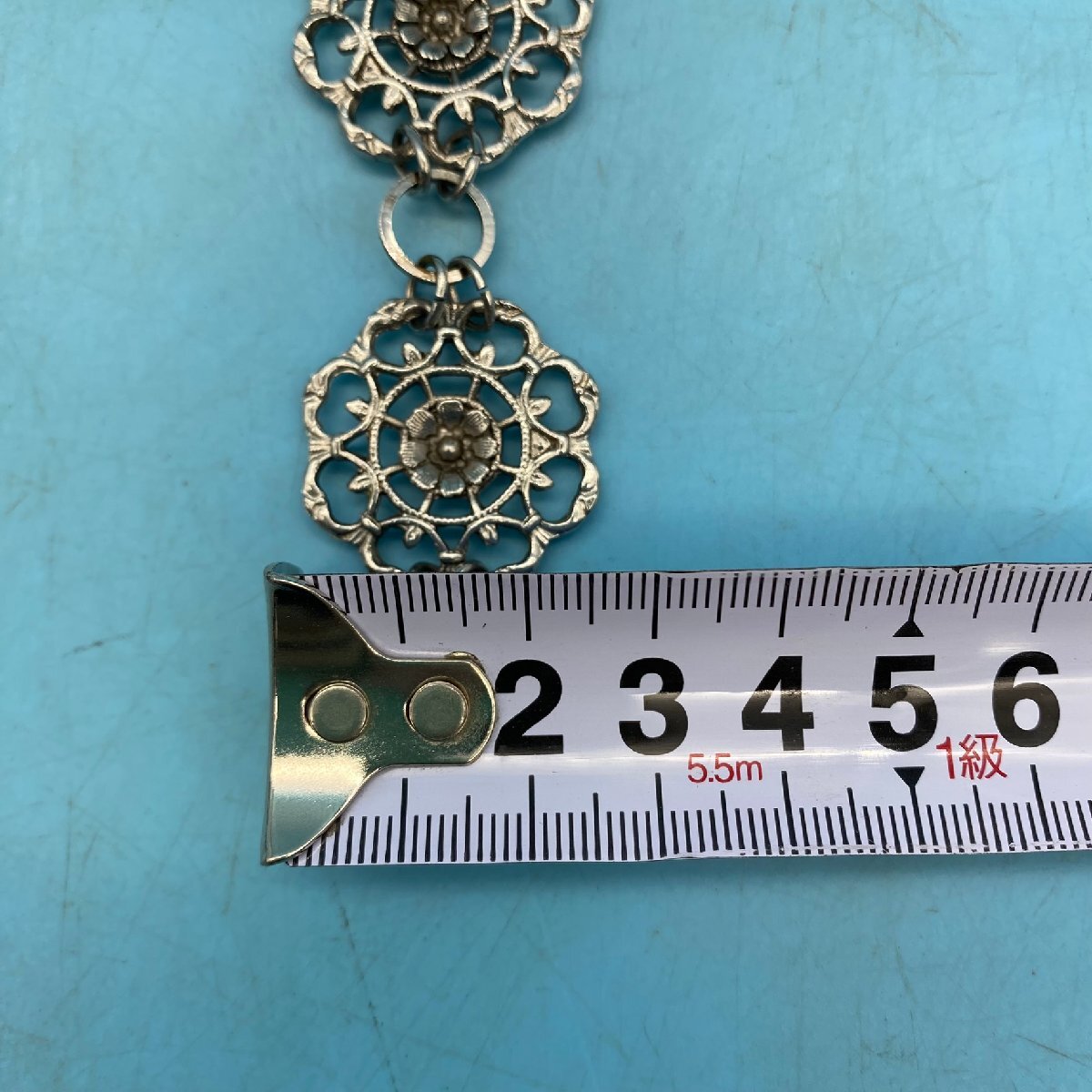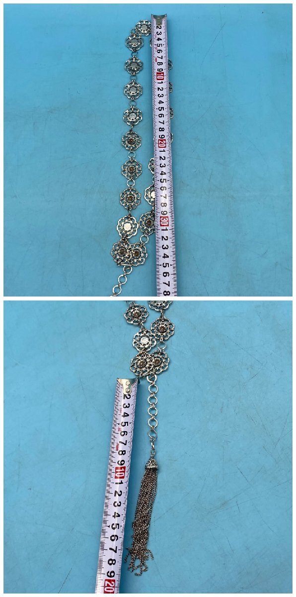 【13437P100】レディース チェーンベルト ウエストマーク フラワーモチーフ 花 シルバーカラー ヴィンテージ フリンジ フリーサイズ