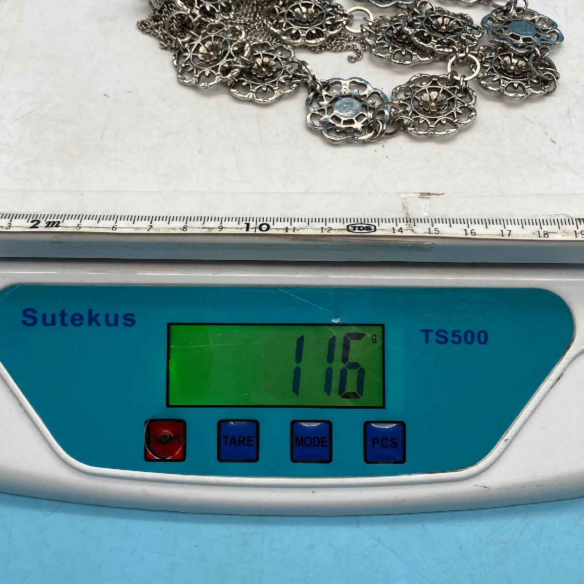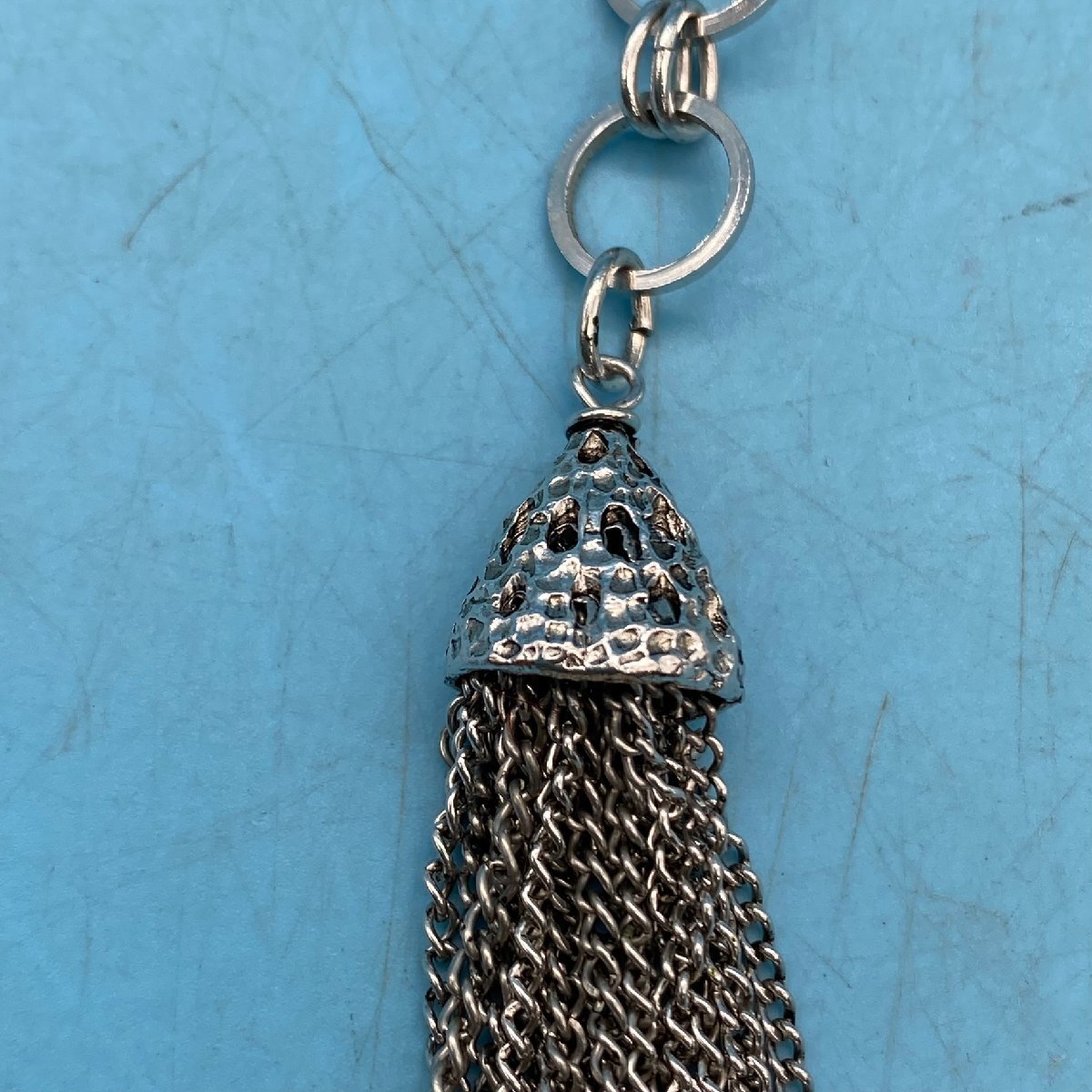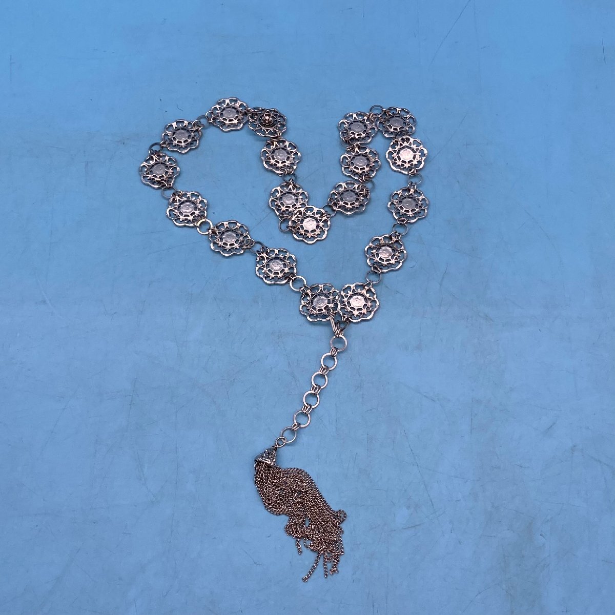 【13437P100】レディース チェーンベルト ウエストマーク フラワーモチーフ 花 シルバーカラー ヴィンテージ フリンジ フリーサイズ