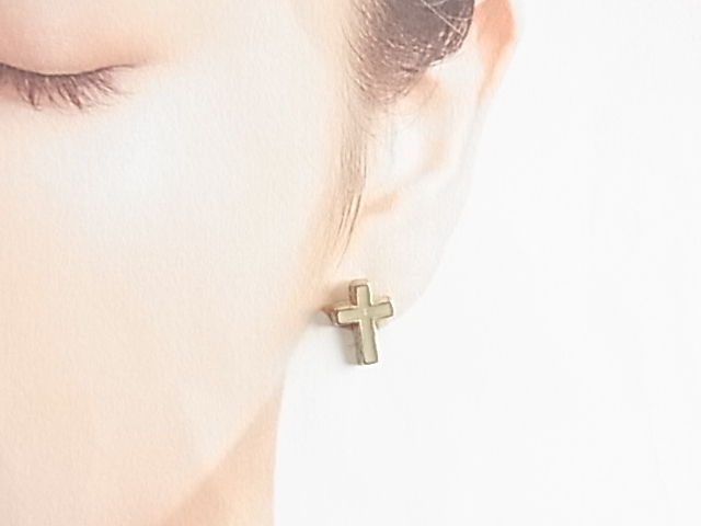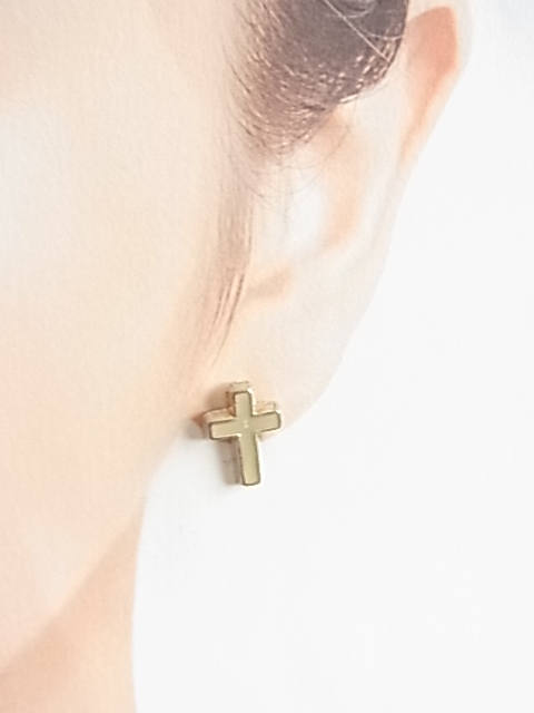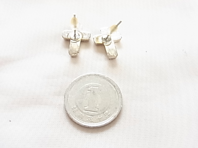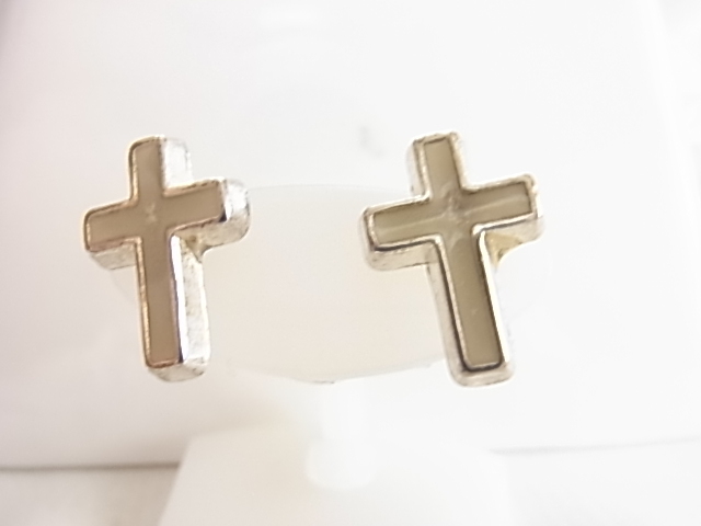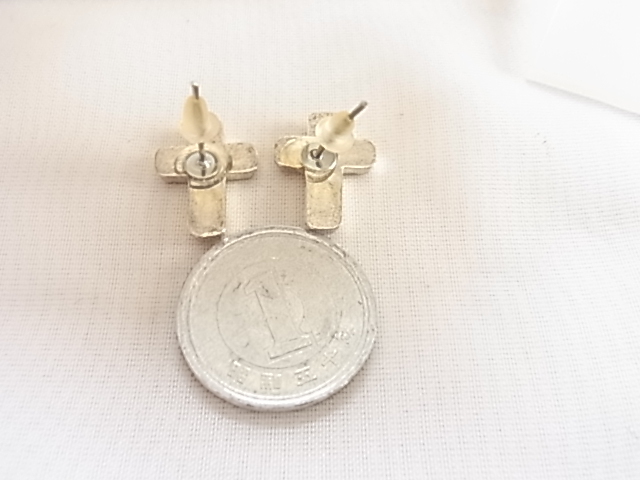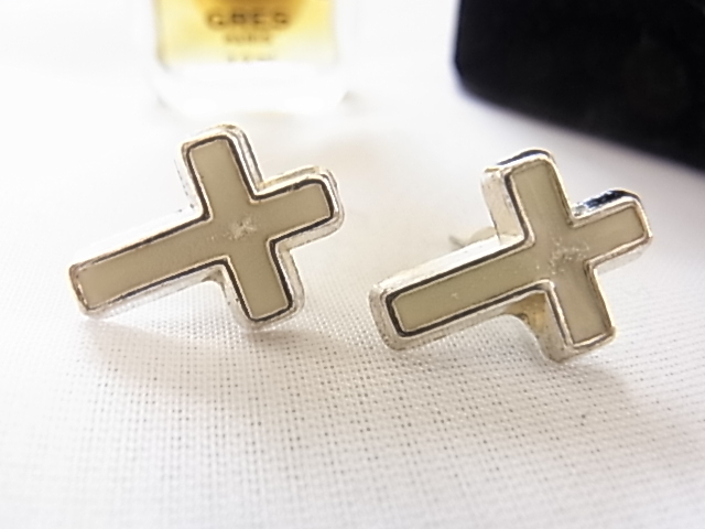100円スタート ビンテージ/ヴィンテージ アイボリーホワイトトーンのエナメル装飾 十字架 クロス シリコンキャッチ素敵なピアス◆