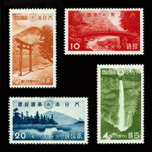 N265■【糊落ち】1938年 第1次国立公園切手 日光 4種完■未使用・良好
