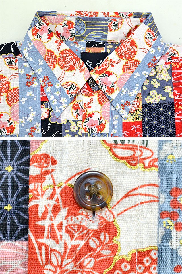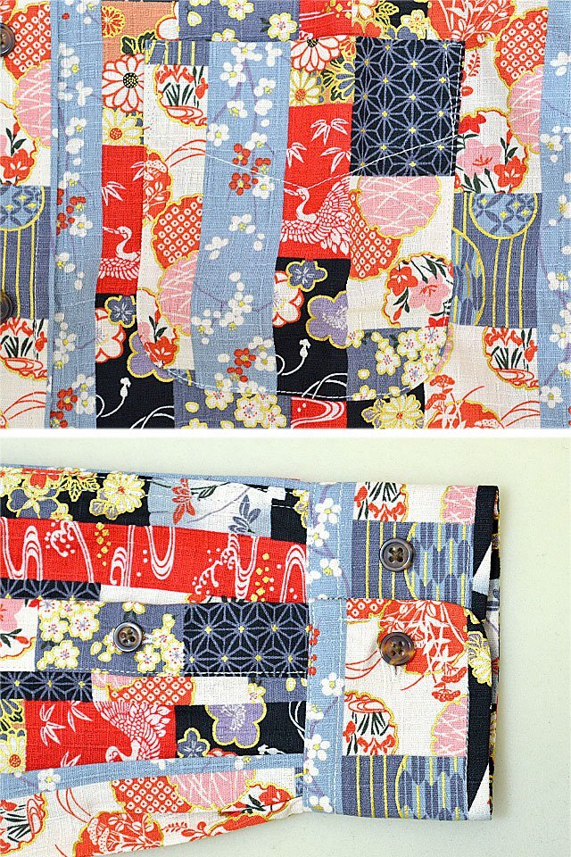 味わい深い物作りをされている衣櫻さんから、レギュラーカラー長袖シャツ「変わり縞」(SA1644)のご紹介です。 様々な和柄模様で構成された変わり縞柄の長袖シャツが登場しました! ボディーには、南十字星をイメージして織られたサザンクロス生地を採用。 裾は中央の長いセンタープリーツ仕様。 一枚で着るのはもちろん、ジャケットやカーディガンのインナーとして着用するも良し、Tシャツやタンクトップの上からさらりと前開きで羽織るも良し。 | |||||||||||||||||||||||||
