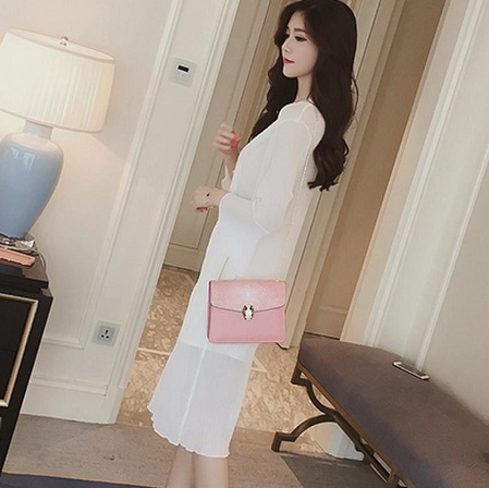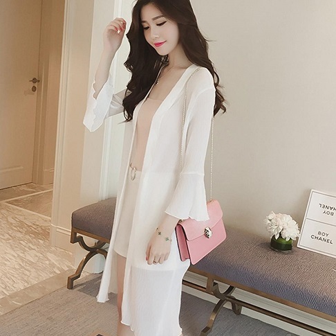 ロングカーディガン フレア 長袖カーディガン(ホワイト)シフォン フレア袖で二の腕ほっそり効果 新品