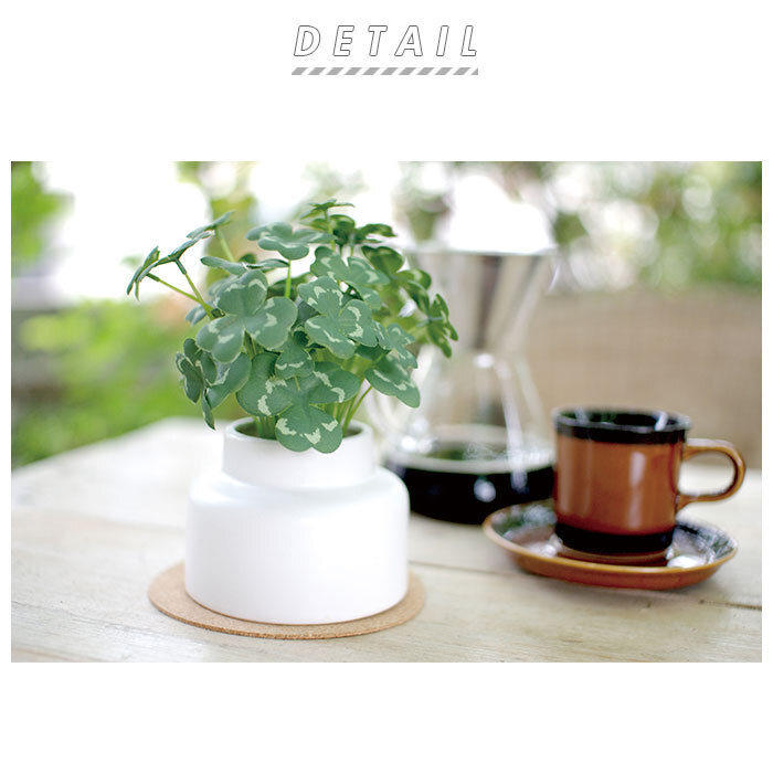 | 素材 | 【Clover】【Ivy】【Sugarvine】 ポリエチレン、ポリエステル、陶器、コルク 【MiniMonstera】 ポリエチレン、陶器、コルク |