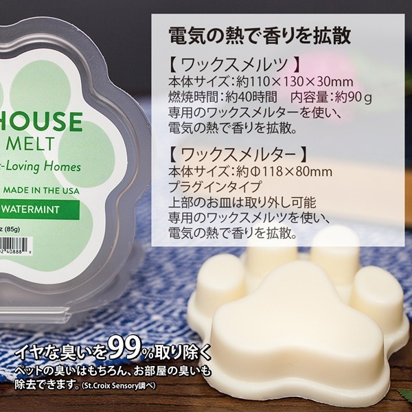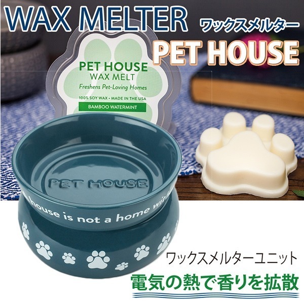 専用のワックスメルツを使い、電気の熱で香りを拡散。本体の皿に別売りのワックスを乗せてスイッチを入れるだけ。【 ワックスメルター 】■本体サイズ:約Φ118×80mm■プラグインタイプ(コードの長さが約1m)電圧100V■原材料:セラミック■MADE IN USA上部のお皿は取り外し可能※本体にワックスは付属しておりません。■PET HOUSEの商品はペットに優しい製品■ほとんどのにおいを中和させる製品や家庭用品には有害な化学物質、染料、石油副産物などが含まれています。ペットハウスの全商品は染料、フタル酸エステル、バラベンを含んでいません。 ペットに優しく、お好みのお部屋の香りでリラックス贈り物にも最適です。香りが良く、上質で長持ちする香りです。