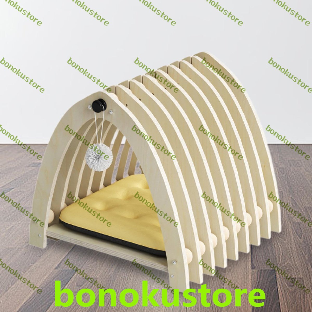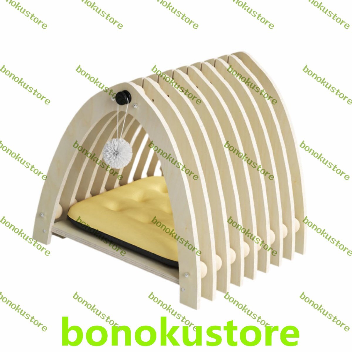 【耐久性】: 無垢材で作られたこの猫ハウスは、ペットに頑丈で安全な構造を提供し、猫に快適な環境を提供します。