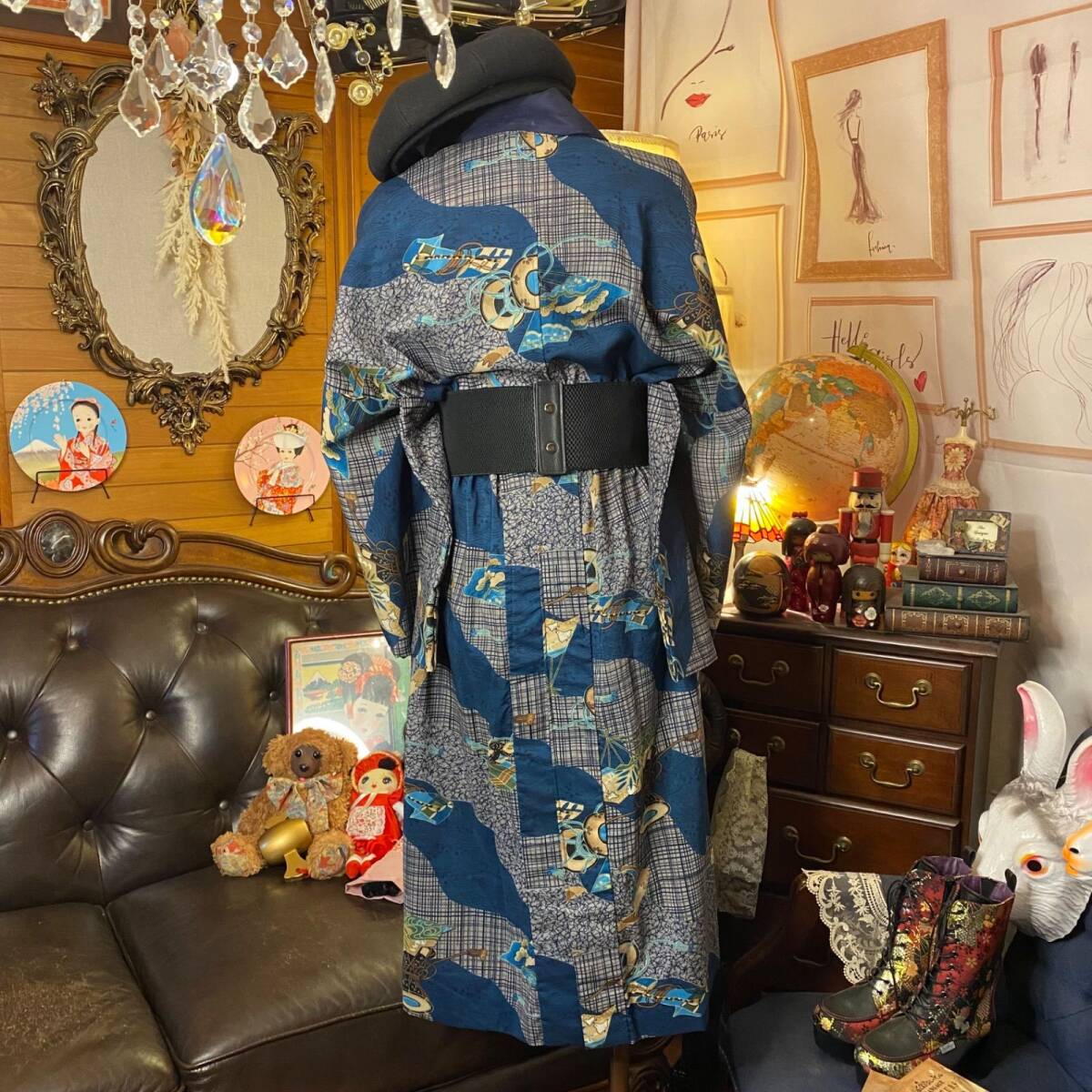 【 和洋折衷 長襦袢 ワンピース ドレス レトロ 古着 ユニセックス 着物 和 ハンドメイド リメイク ユニーク/個性的/素敵な和柄 JW-23】